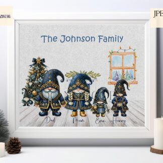 Navy Blue and Gold Glitzy Christmas Gnome Family
