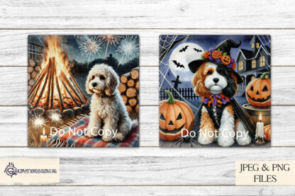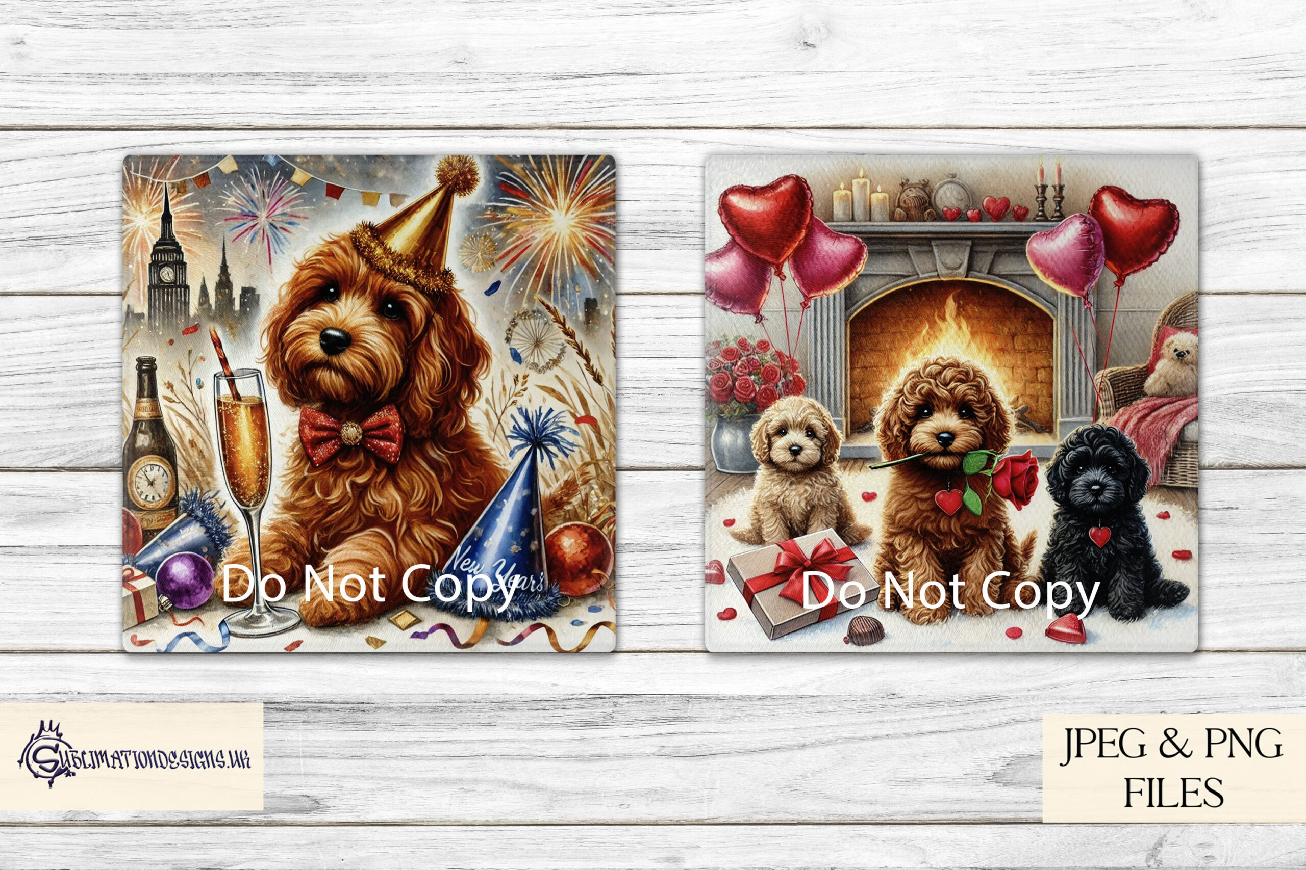 Celebrate the seasons with the 12 Months of Poo’s Design Set – a charming collection of 12 unique illustrations featuring adorable poodle mixes in monthly scenes. From fluffy Cavapoos to curly Cockapoos, this set showcases different coat colours and seasonal themes for every month of the year.