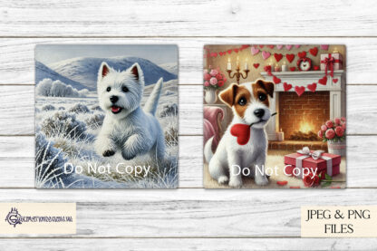 These high-resolution JPEG and PNG designs are perfect for personalised calendars, chopping boards, coasters, and dog-themed gifts. A versatile set that will appeal to terrier lovers and seasonal product makers alike.