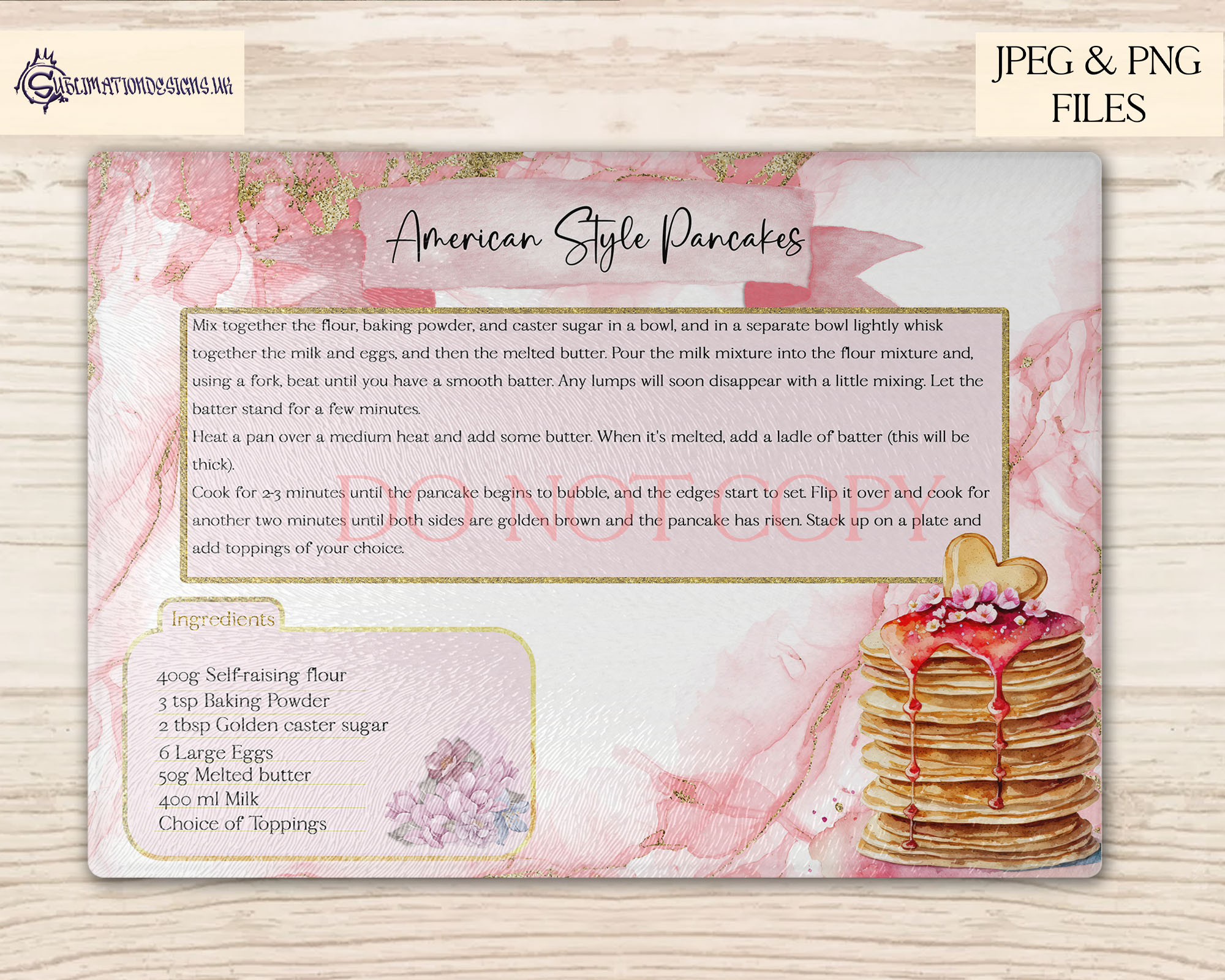 American Pancake Recipe Chopping Board Design | Single A4 Design | JPEG and PNG | 2 Mock Ups | Commercial Licence