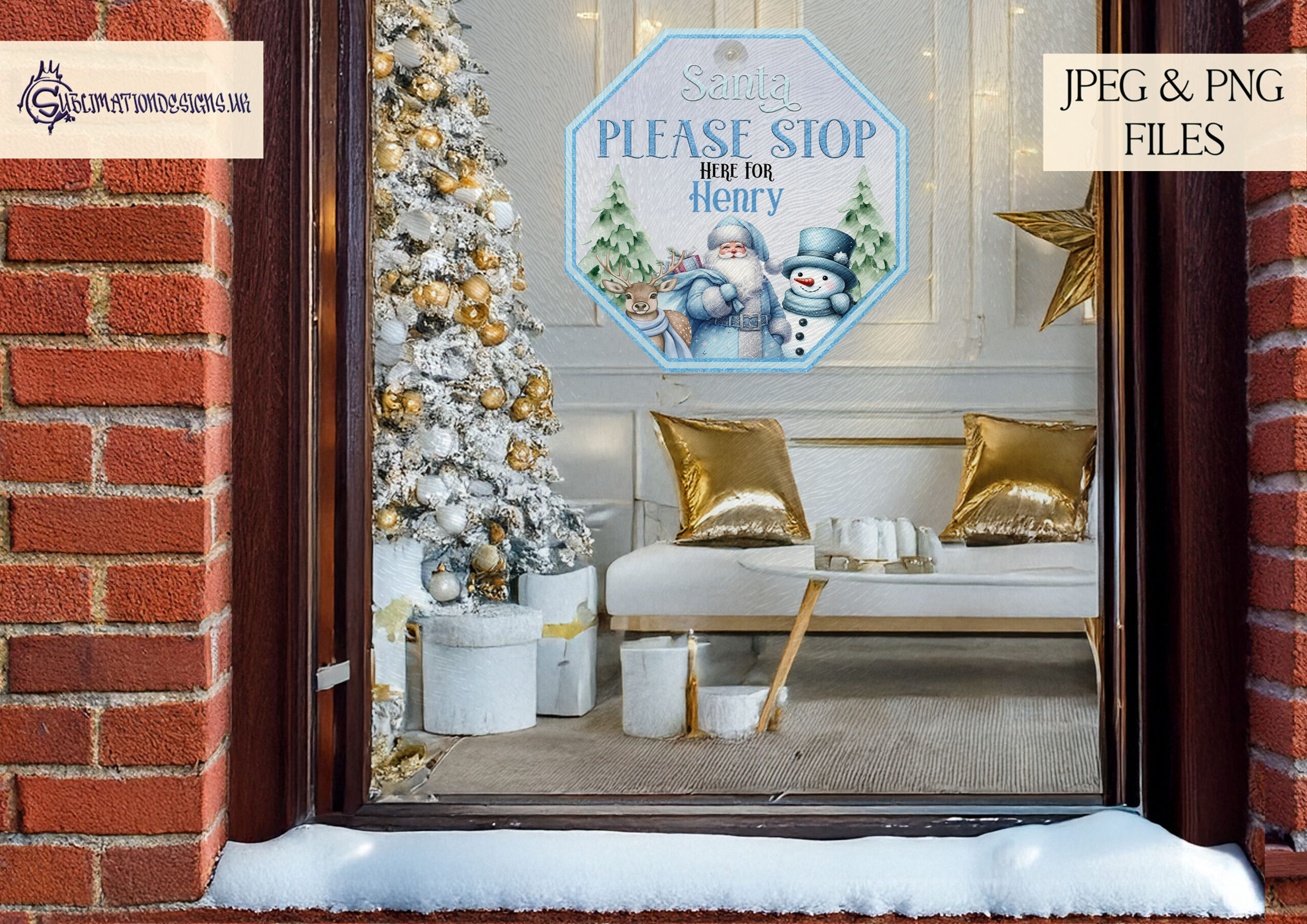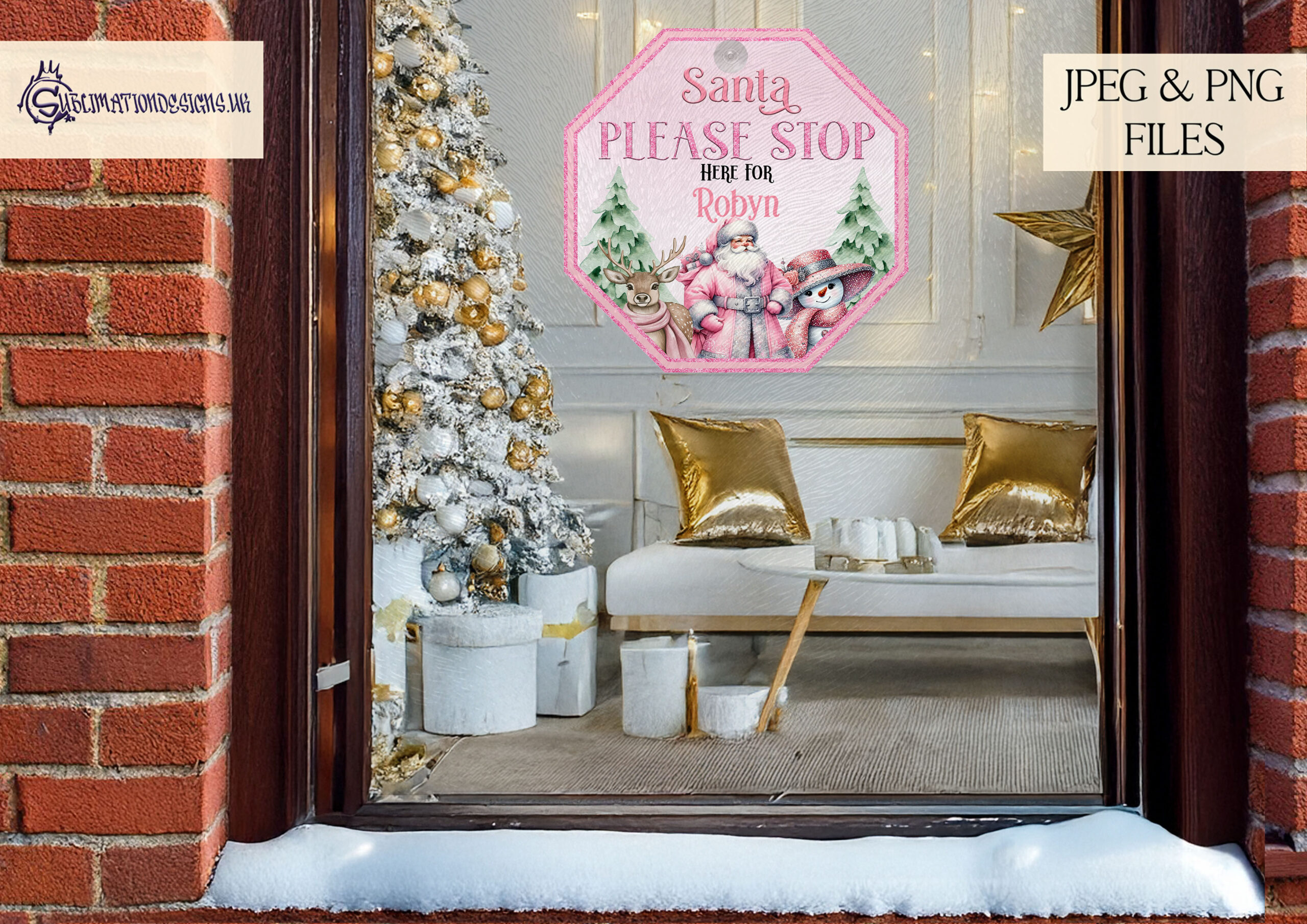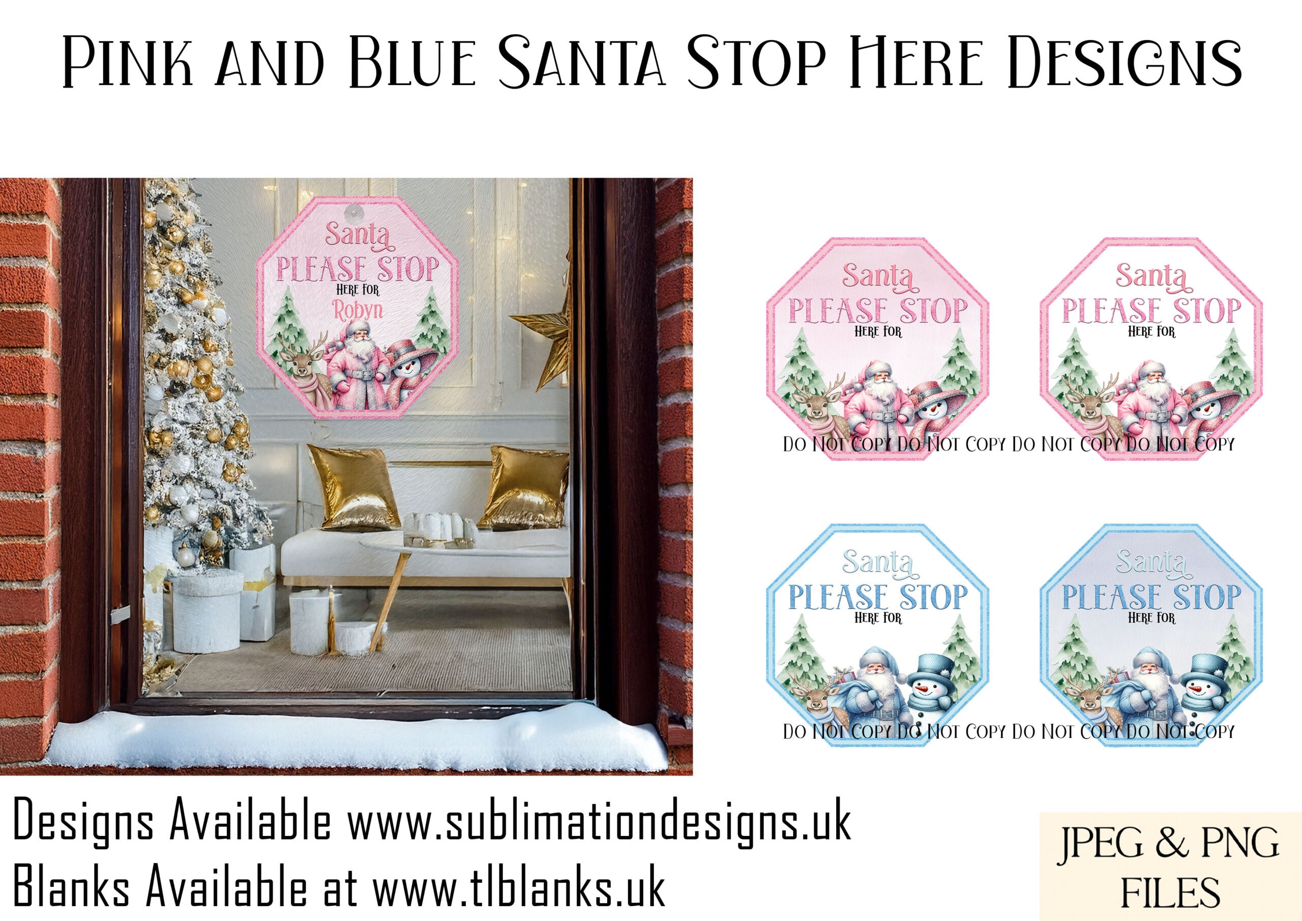 Baby Blue and Pink Santa Stop Here Design Set | 2 Background Colours and Textless Versions In Each