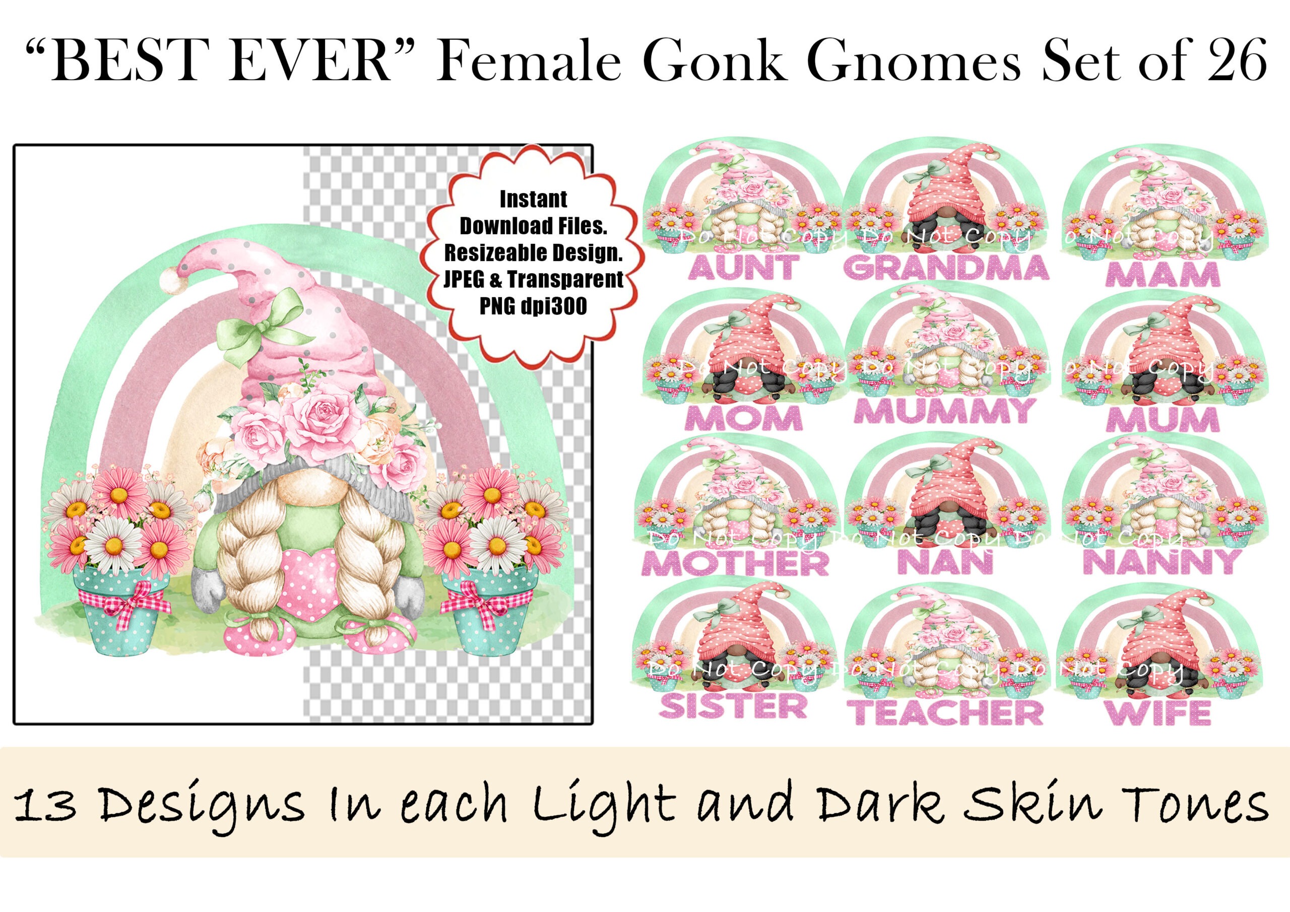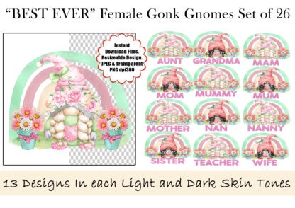 “Best Ever” Female Gonk Gnomes Design Set – 26 Designs