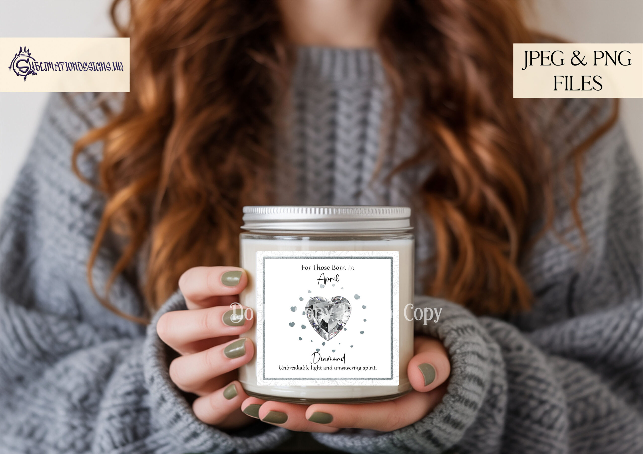 Birthstone Candle Labels Designs Set – 12 Monthly Designs with Mock-Ups