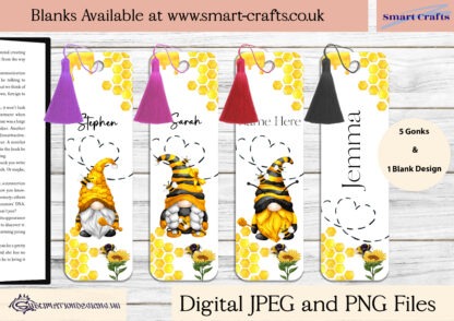 - 6 Gonk Gnome Bee Designs (including 1 blank, no gnome)