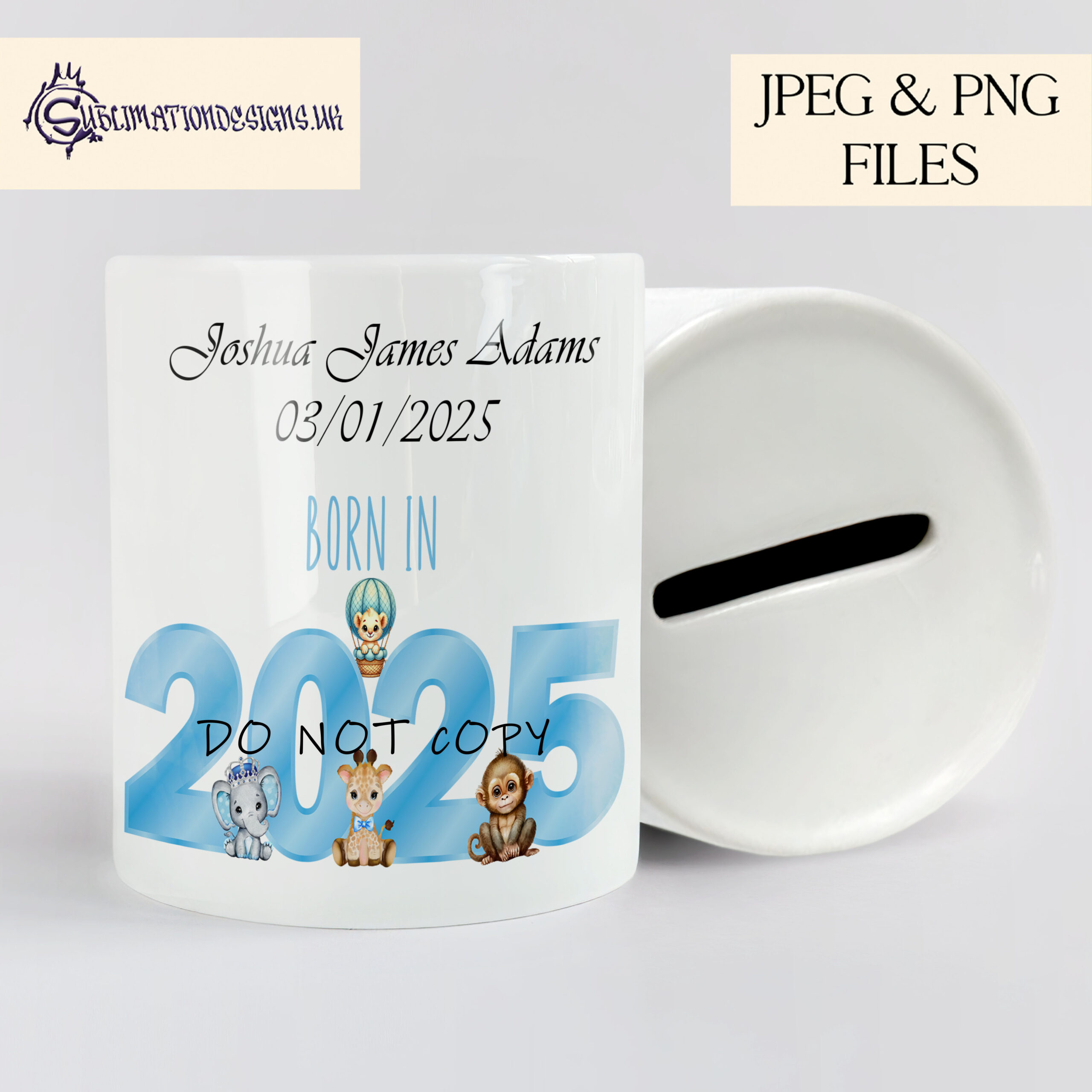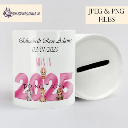 Welcome little ones into the world with our Born in 2025 Safari Animal Design Set! This adorable collection features 2 designs in a charming safari theme with the wording “Born in 2025.” Each design showcases a cute monkey, elephant, giraffe, and lion, available in both blue and pink colour schemes. Perfect for creating baby grows, keepsakes, and personalised gifts, this set can also be used for items like coin jars, cards, and more.