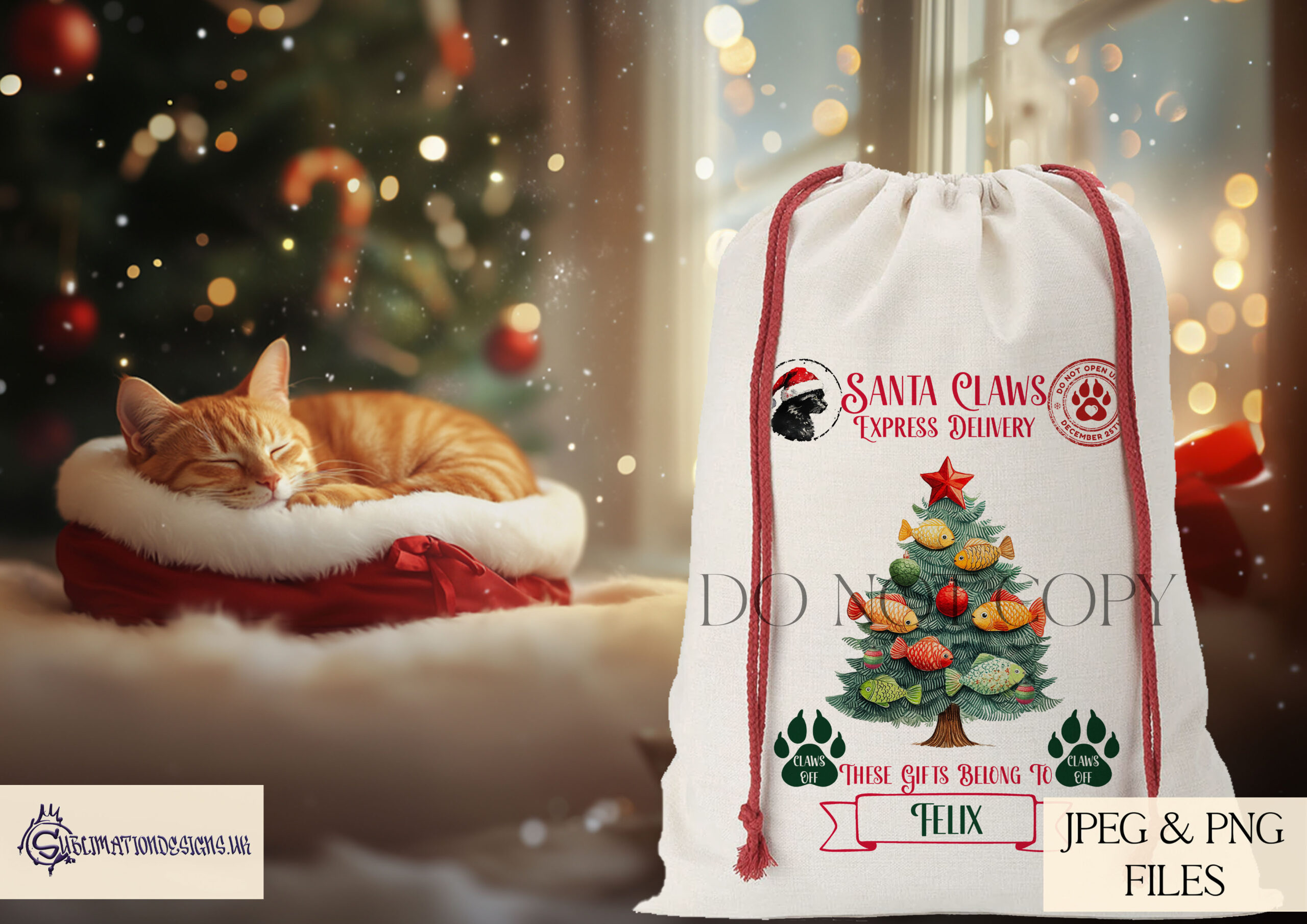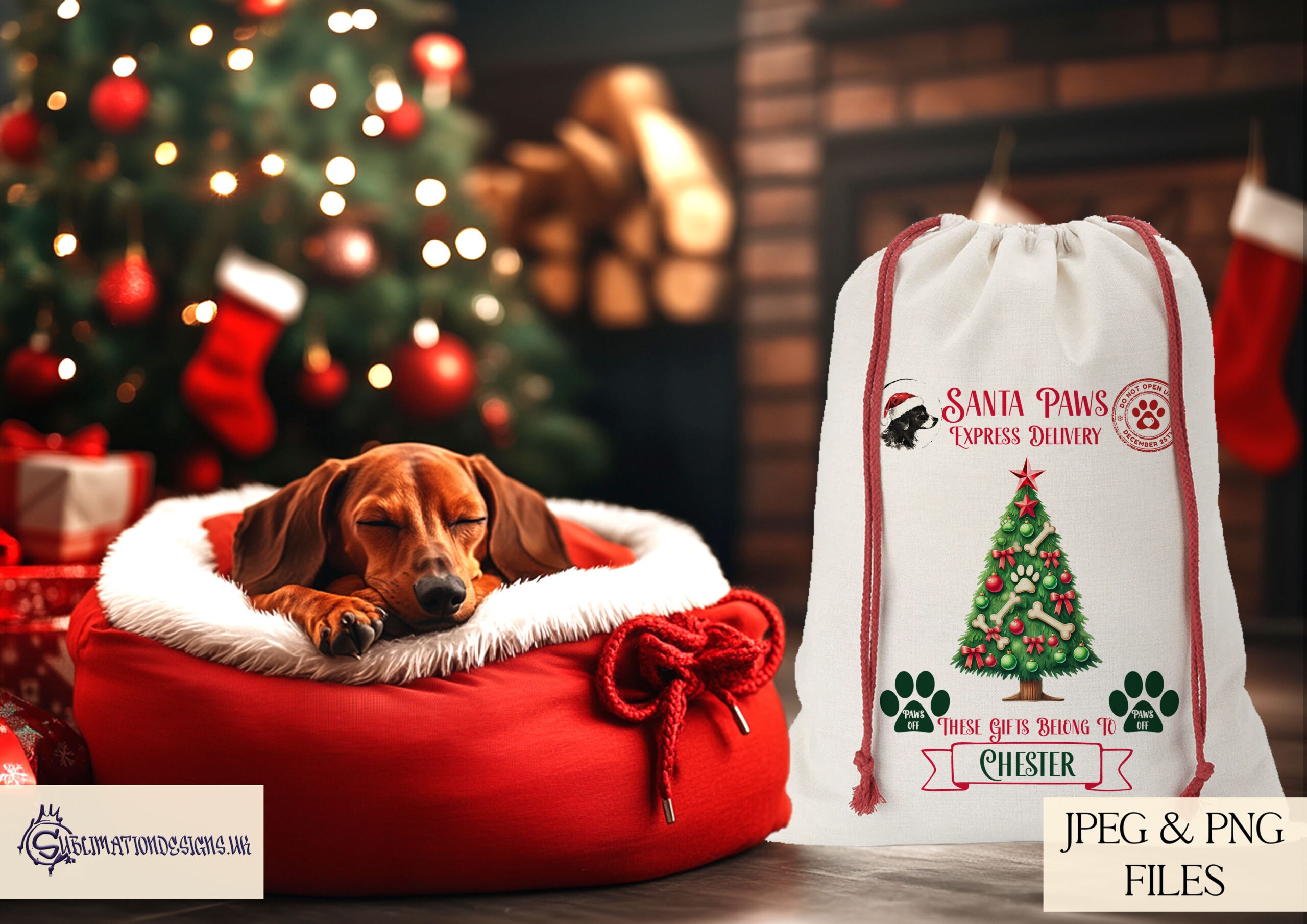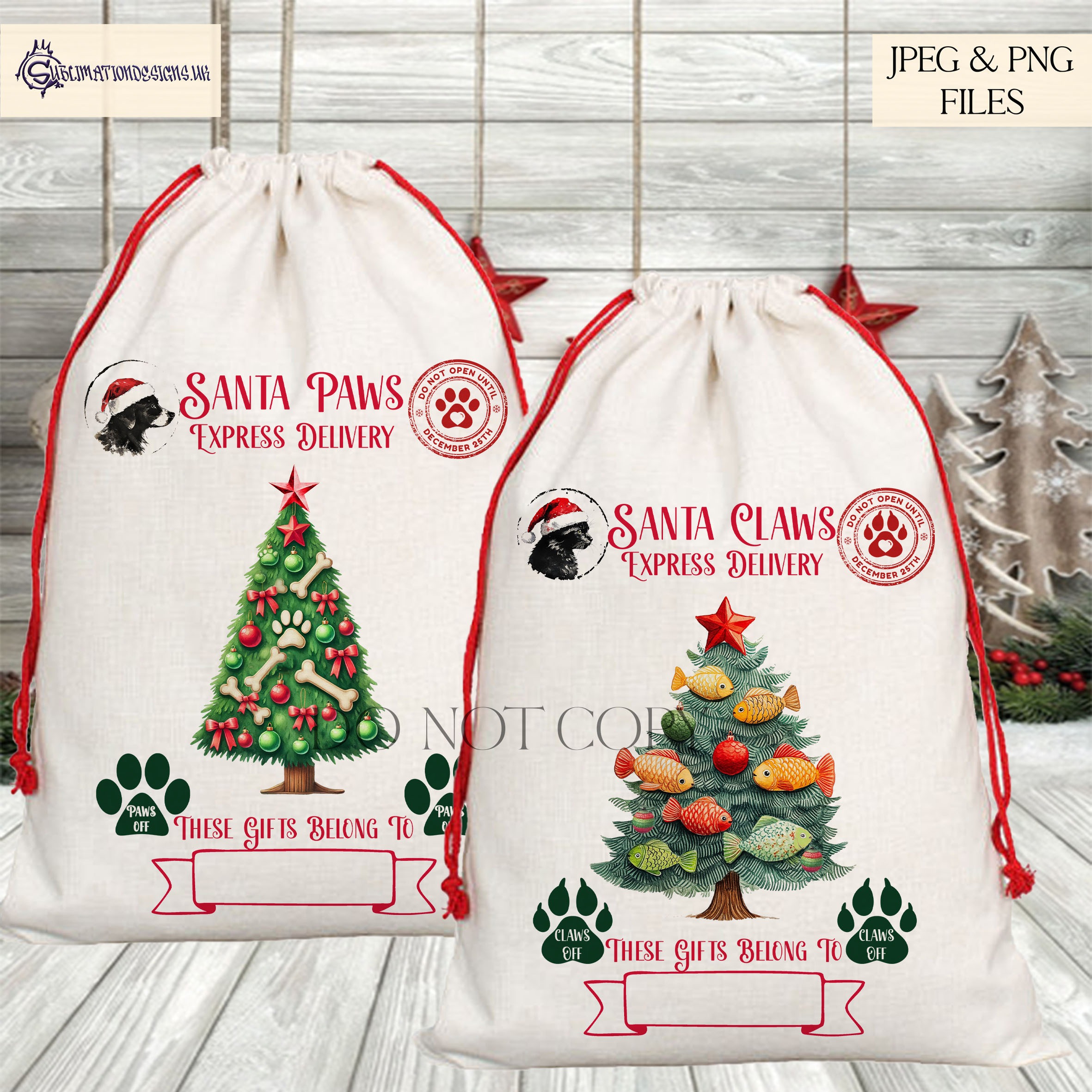 Cat and Dog Santa Sack Design Set – 4 Customisable Santa Paws and Santa Claws Designs