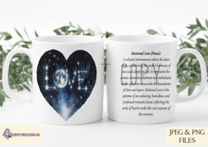 - Mug Wrap Design: Includes a dictionary-style description of “Universal Love” alongside the celestial artwork