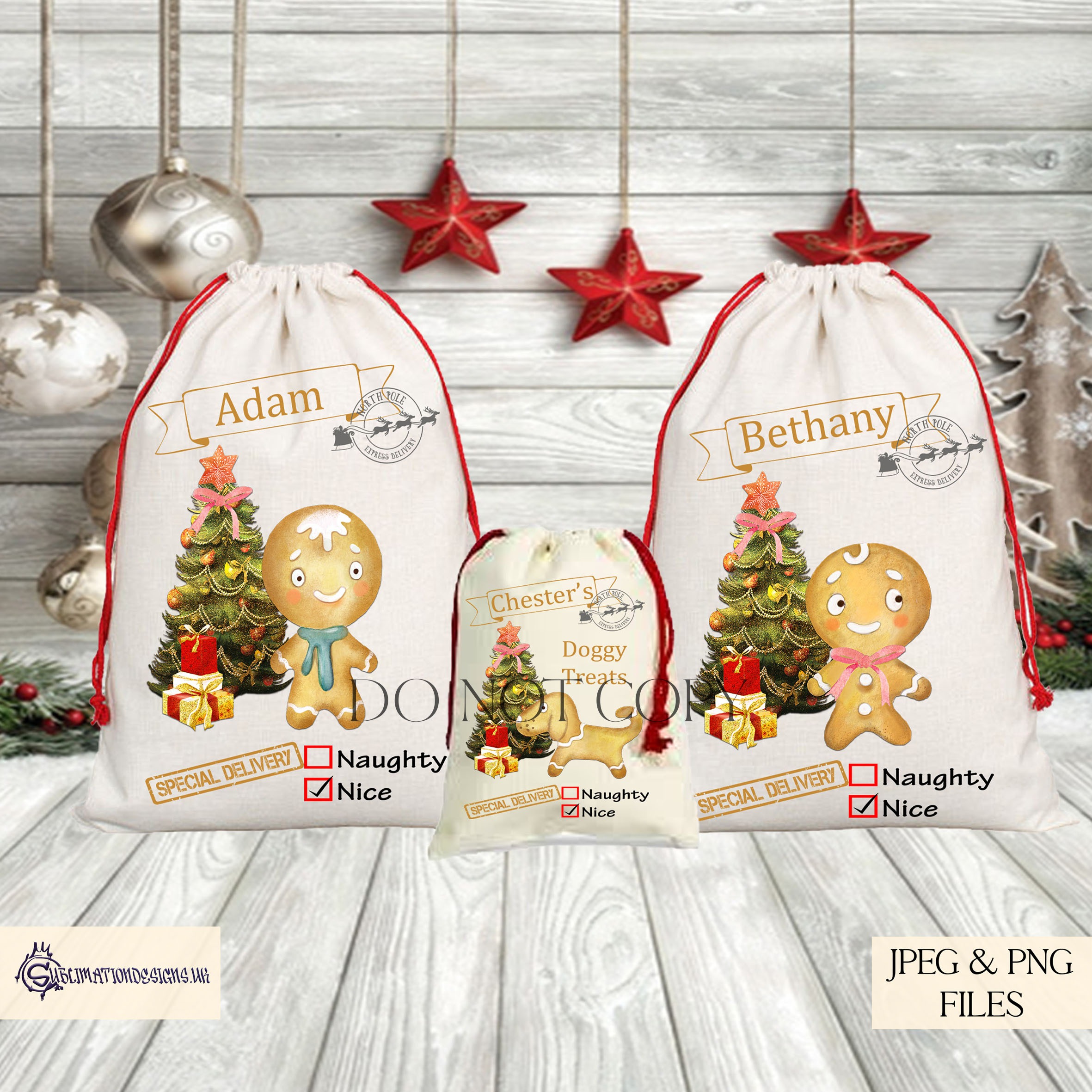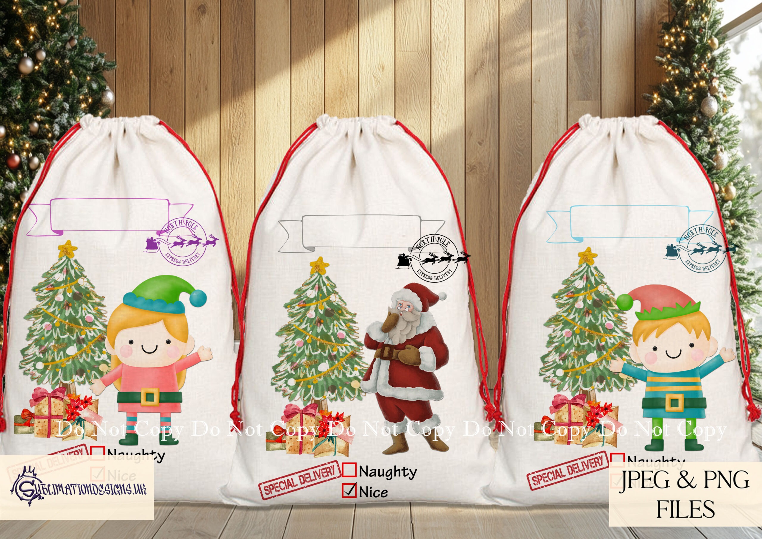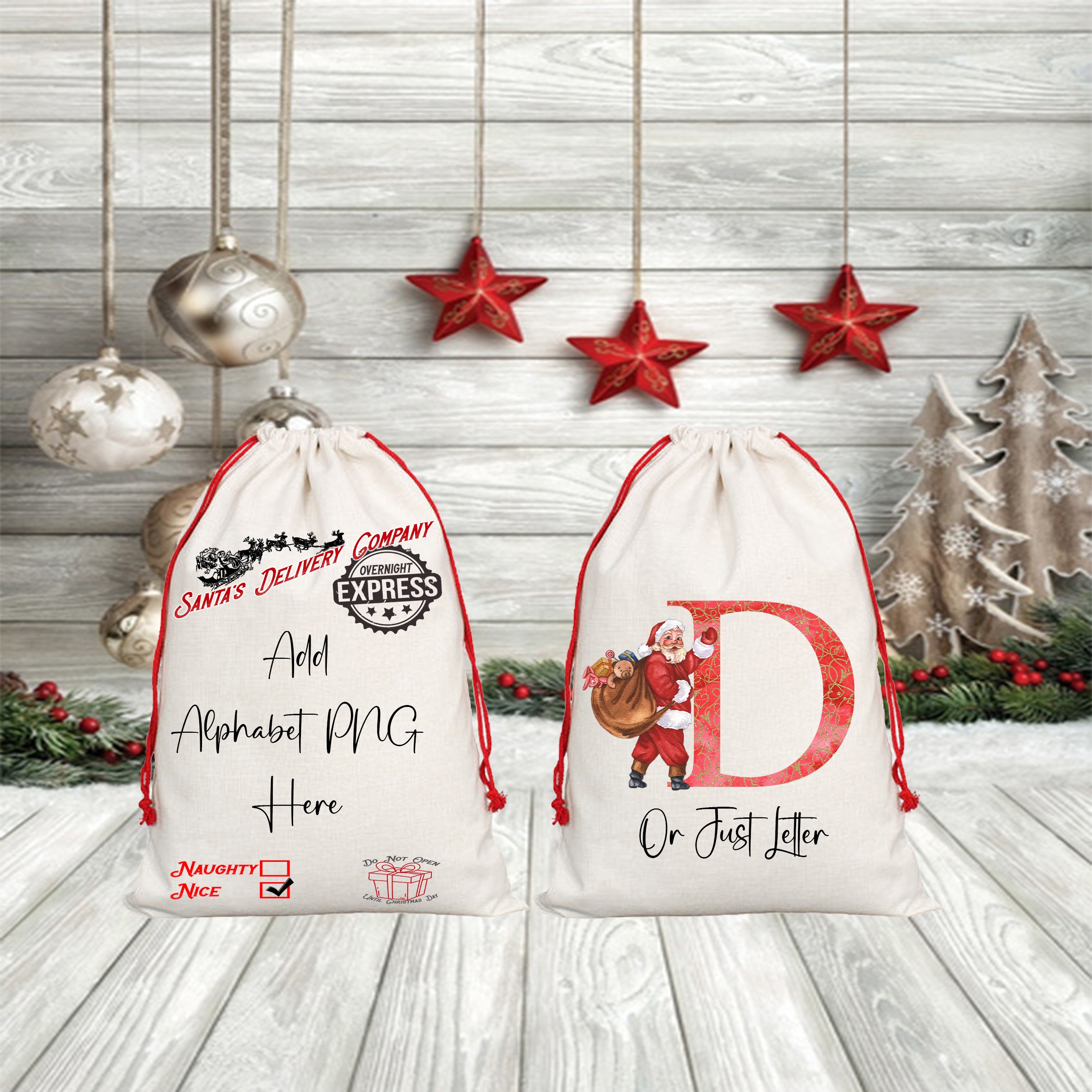 Children’s Santa Sack Designs and Alphabet Set | 10 Sack Designs plus A–Z Santa Alphabet | JPEG & PNG | Multiple Mock-Ups | Commercial Licence