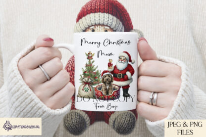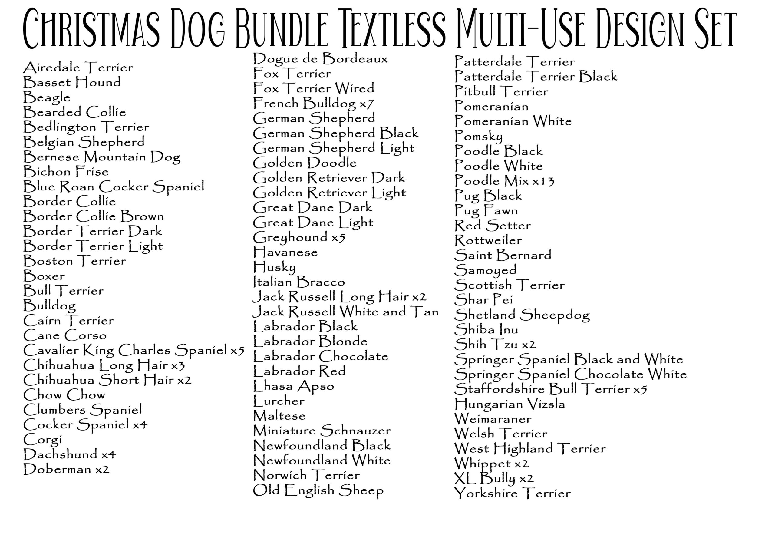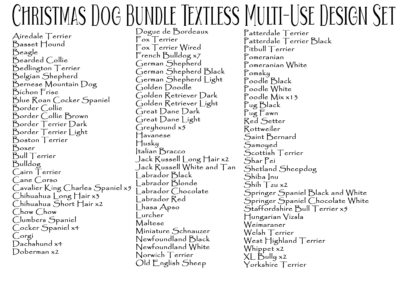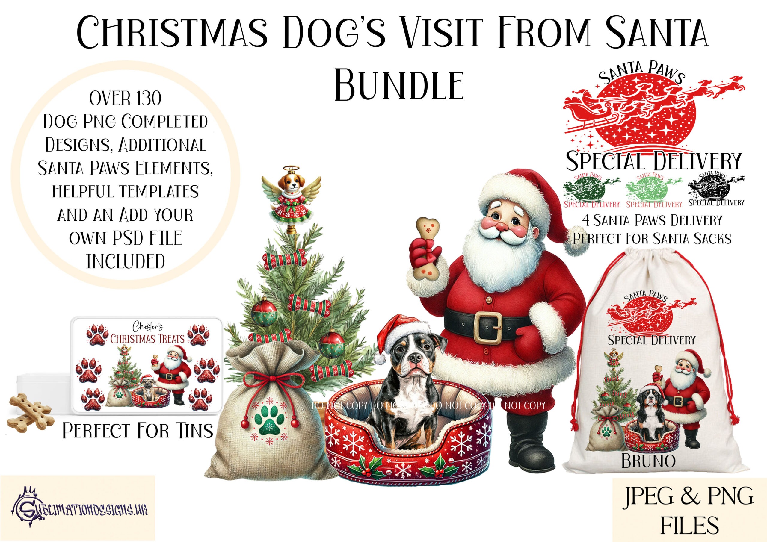 - Over 130 high-resolution completed dog designs in PNG format, featuring a festive scene with a dog, Santa, and gifts