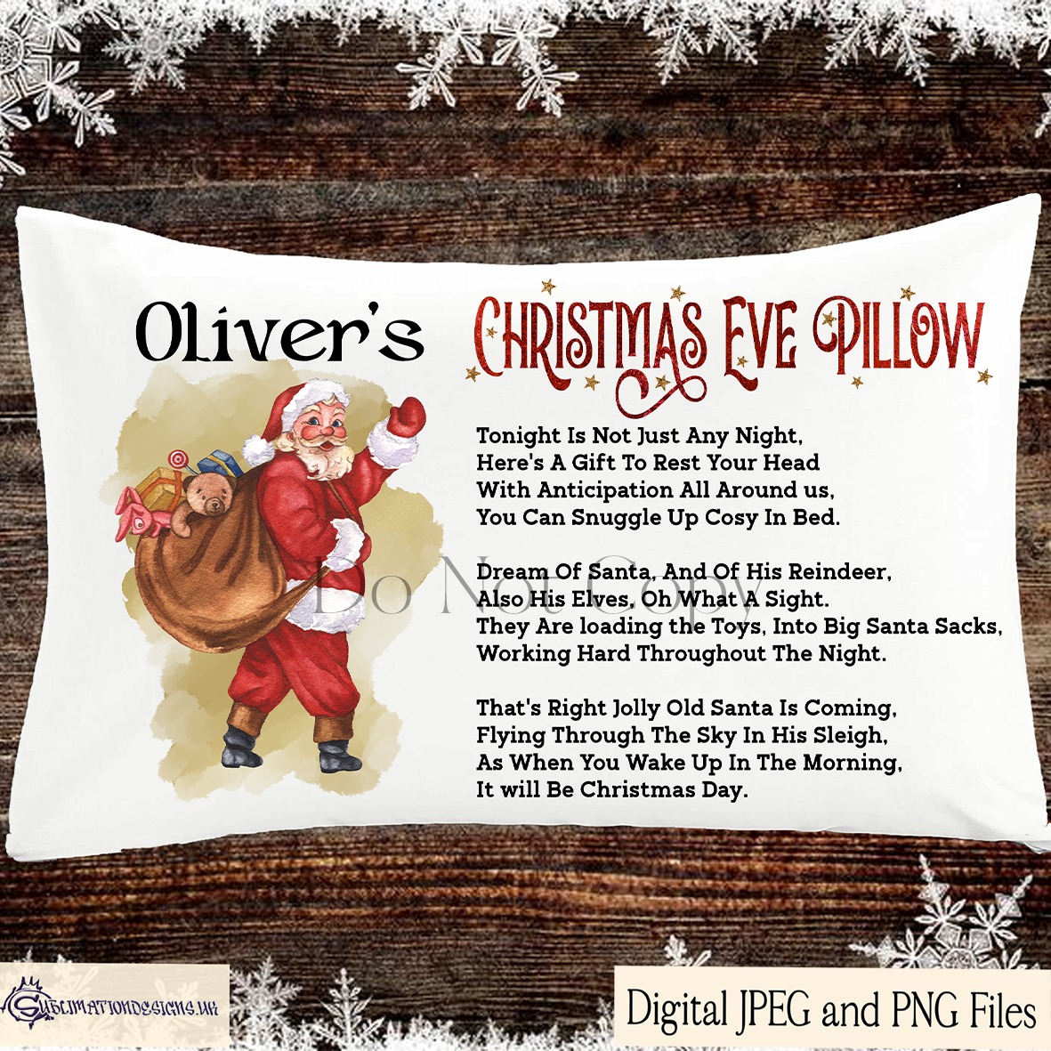 Christmas Eve Pillow Designs Set | 68 Files with Exclusive Verse | JPEG & PNG | 4 Mock-Ups | Commercial Licence