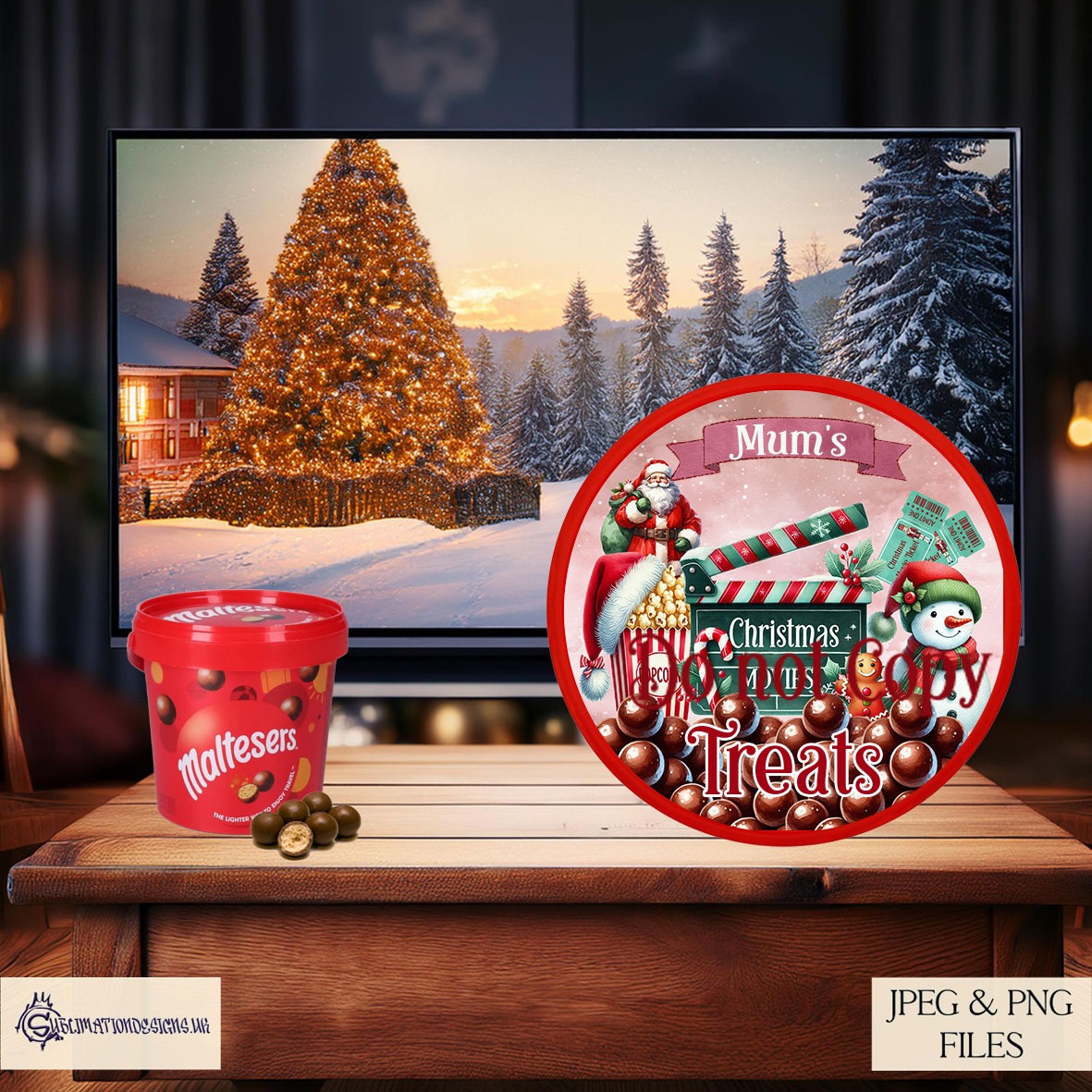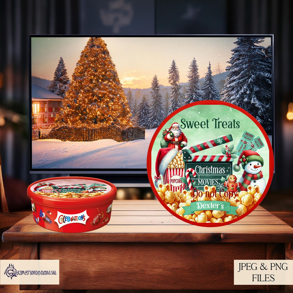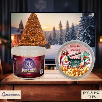 Make your Christmas movie nights extra special with our Christmas Movie Night Treat Design Set. Perfect for creating popcorn tub toppers, chocolate treat lids, and more, this festive set includes 4 designs in both red and green versions. Featuring chocolate and popcorn-themed designs, these versatile textless images also come with 2 optional banners for customisation. Whether you’re crafting for family movie nights or festive gift tubs, these designs are perfect for round-lidded containers and other creative projects.