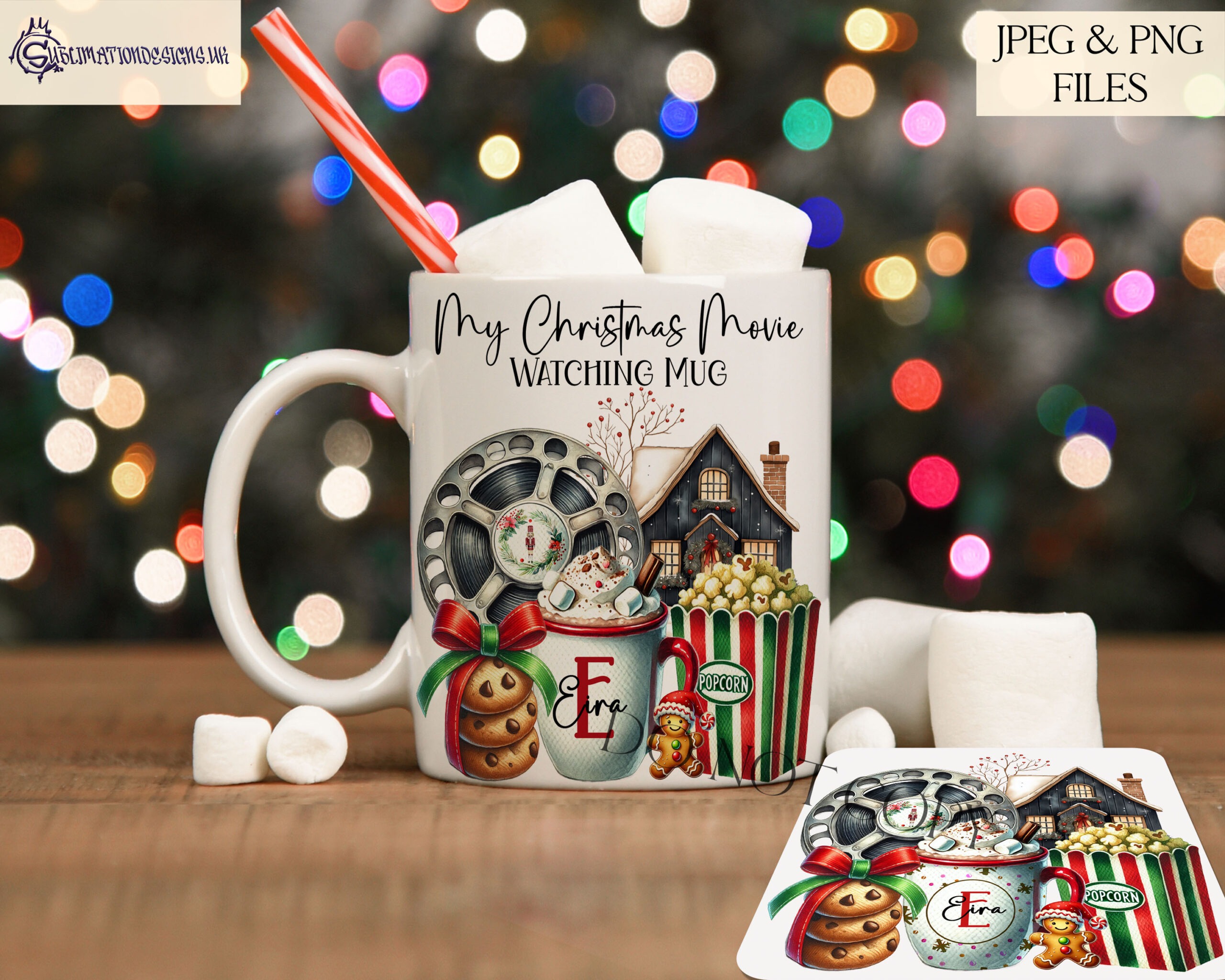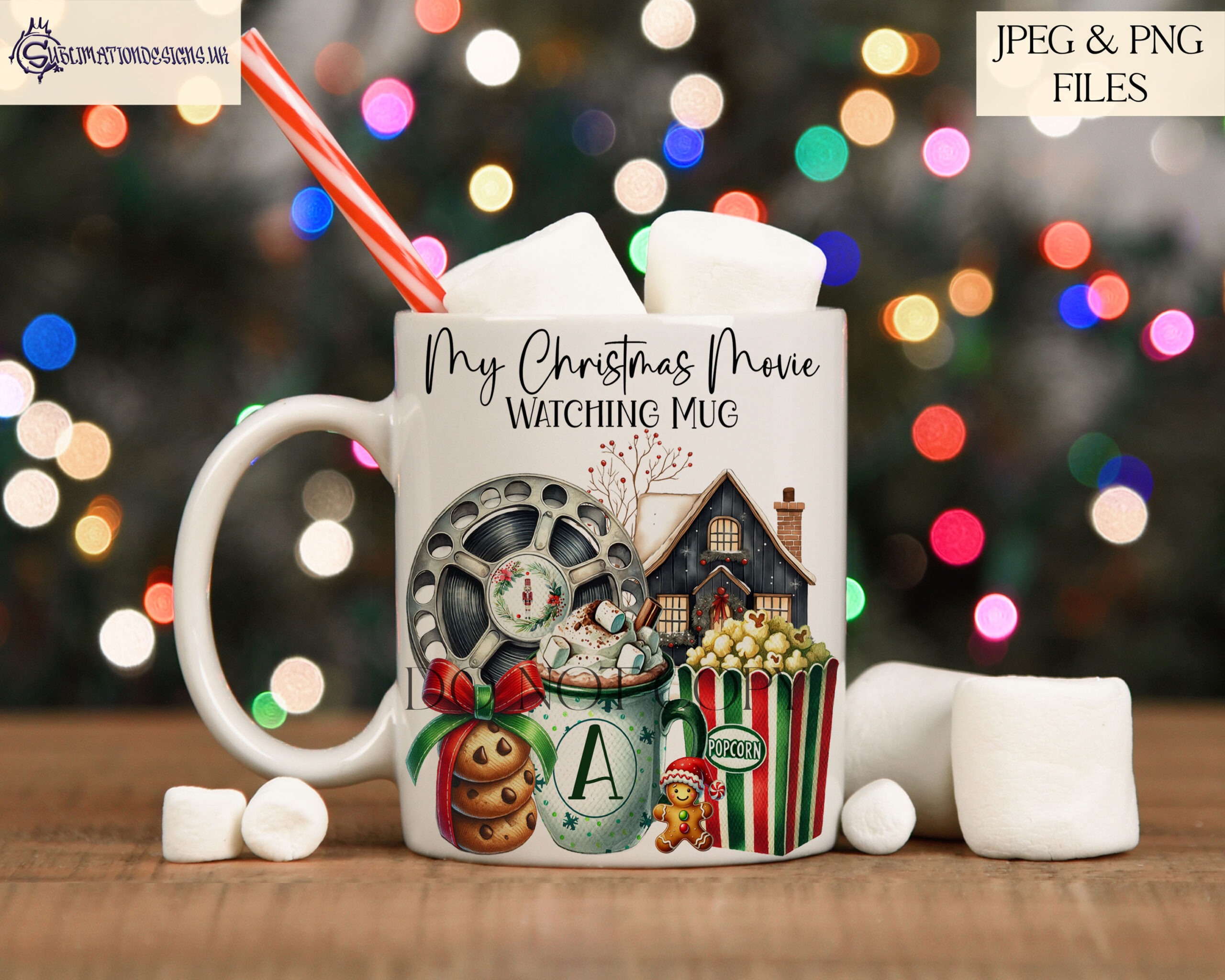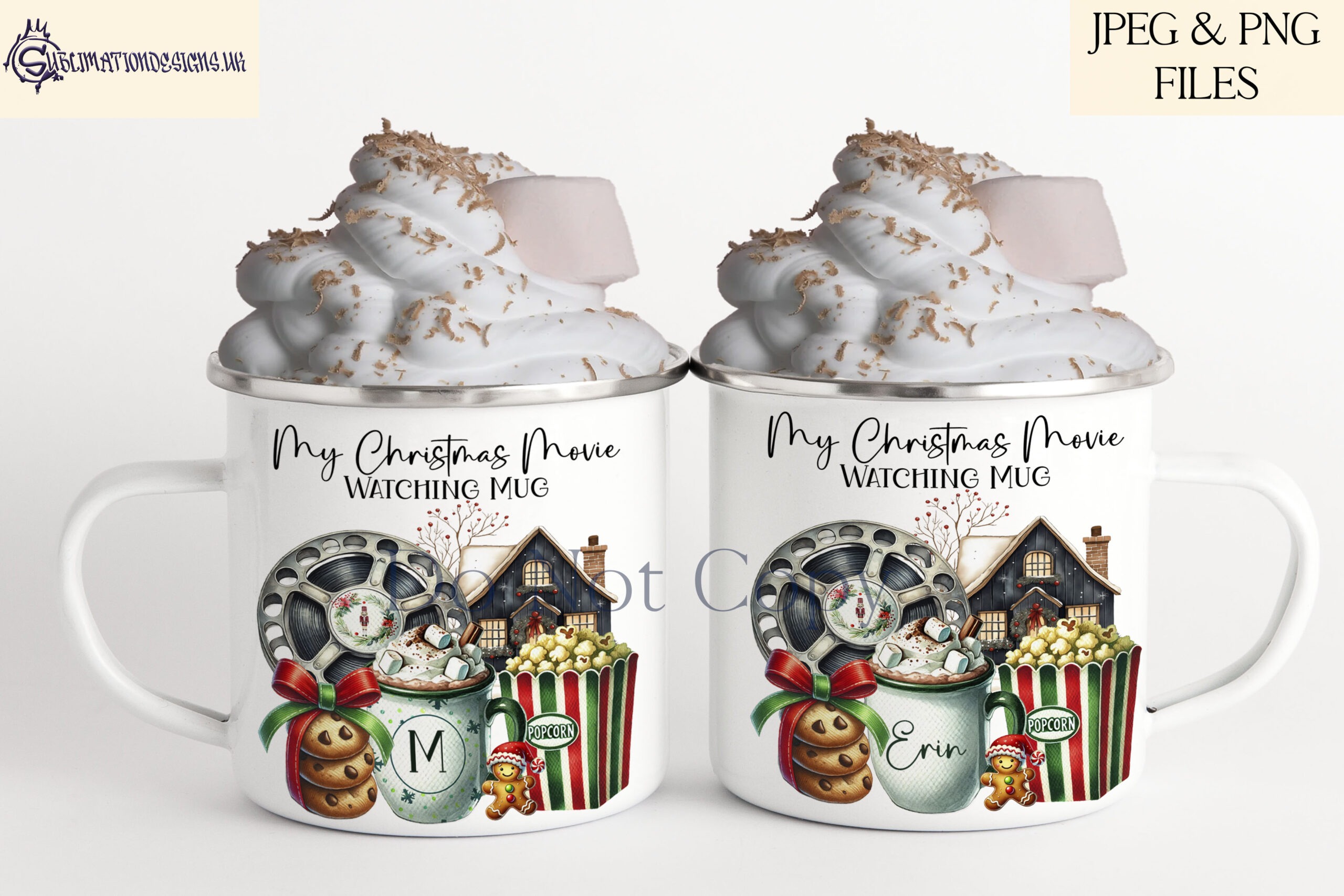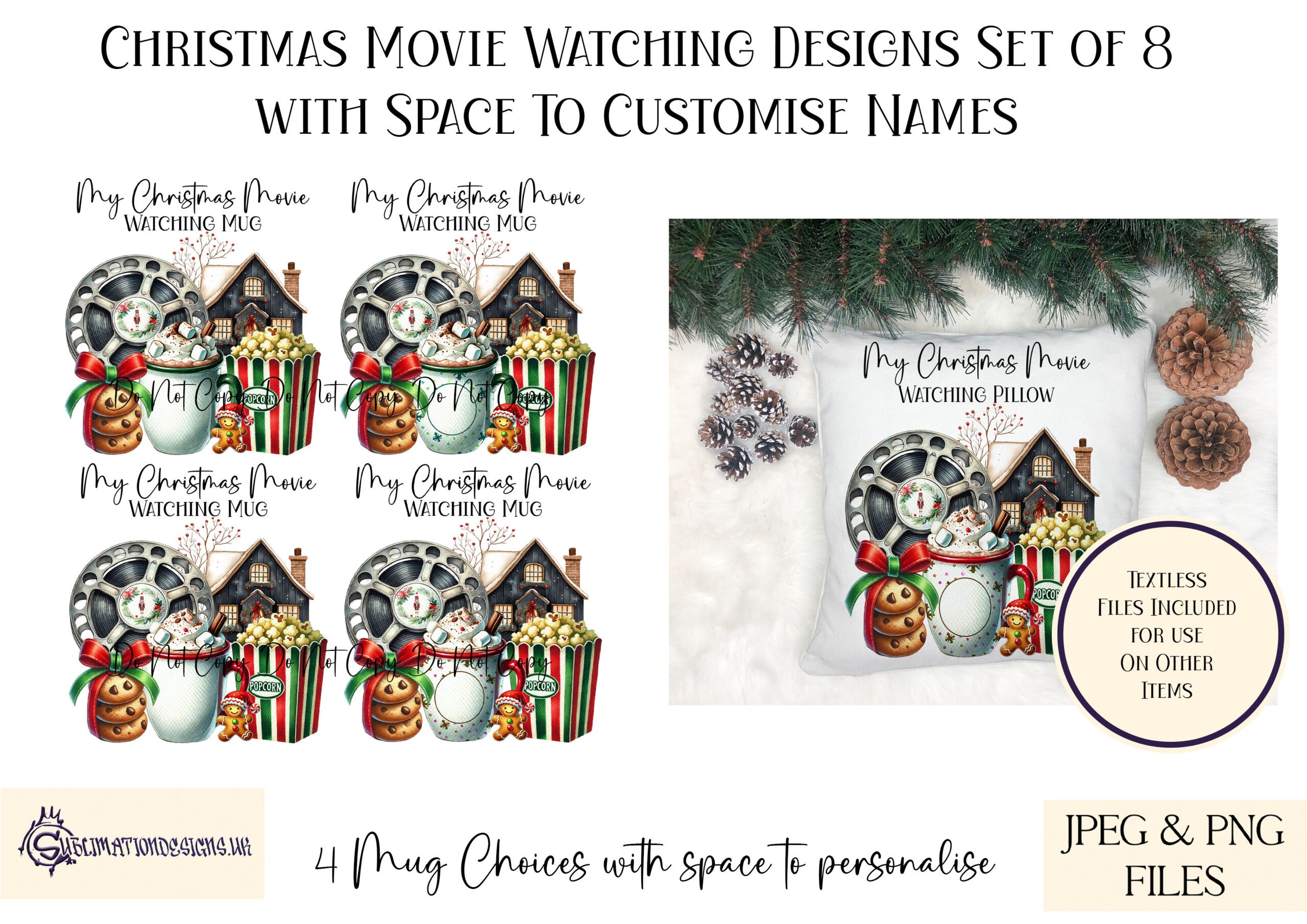 Christmas Movie Watching Mug Designs Set | 8 Customisable Templates | JPEG & PNG | 3 Mock-Ups | Commercial Licence