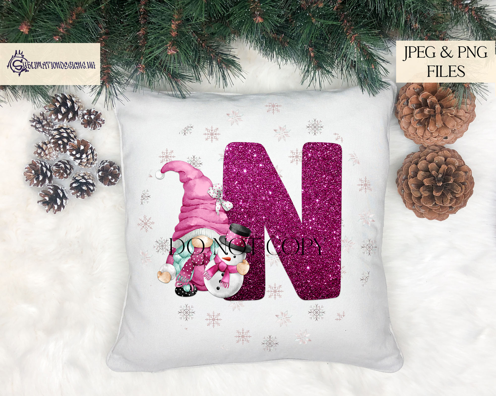 Add a festive touch to your projects with our Circular Framed Christmas Gonk Snowman Alphabet Design Set! This charming collection includes 52 designs, featuring bold glitter letters (A-Z) in pink and blue, adorned with a whimsical snowman gonk and a circular snowflake background. Perfect for creating personalised baubles, but versatile enough for use on a variety of products.