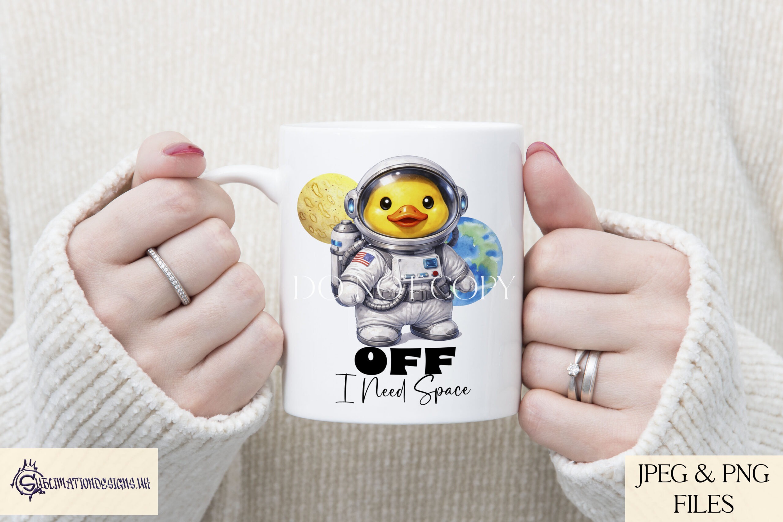 The Comedy Astro Duck Designs Set is a digital bundle that brings some cosmic humour to your gift-making. It features our very own astronaut duck, with and without a planets background, and textless designs for added versatility.