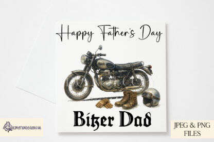A brand new Comedy Biker Dad Designs Set featuring 6 high-quality JPEG and PNG files. This novelty collection is perfect for Father’s Day, birthdays, and fun gifts for motorbike lovers. The set includes two main illustrations—one showcasing a retro-style motorbike, and the other featuring a dad snoring while resting on a bike.