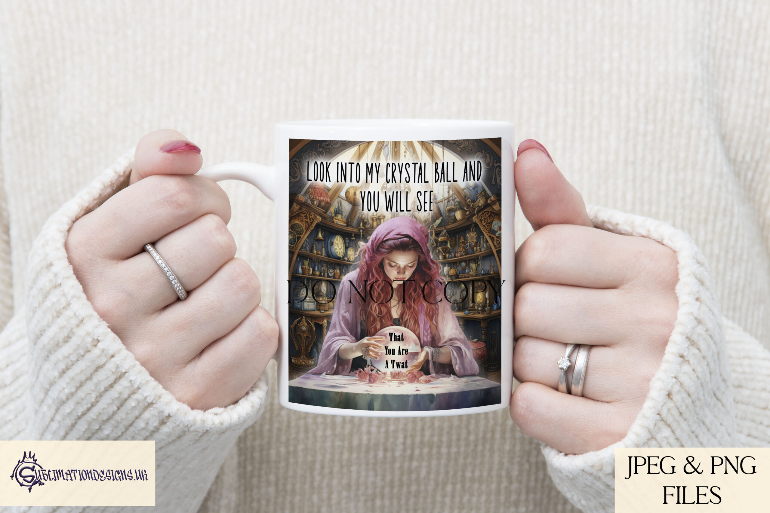 Step into the mystical world with our Comedy Fortune Teller Designs Set of 4. This fun collection features a fortune teller looking into her crystal ball, with two versions: one with a mystic background and one without. The set also includes two pre-worded designs: “Look into my crystal ball and you will see” and “My Sources Are Telling me”, with a blank space in the crystal ball to add any message you wish. Whether you’re creating fun gifts or quirky décor, these designs are perfect for adding a comedic and mystical touch to your projects.