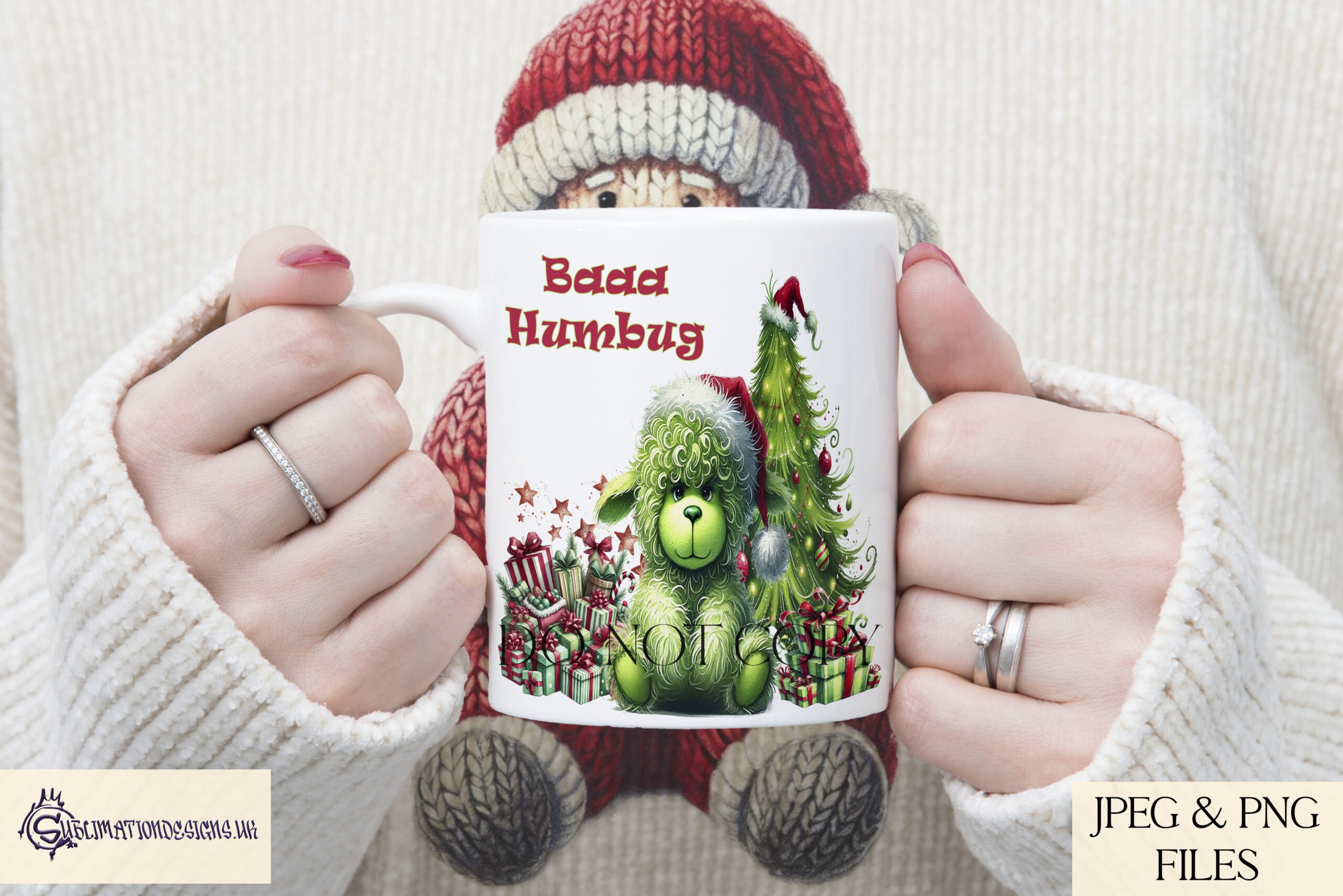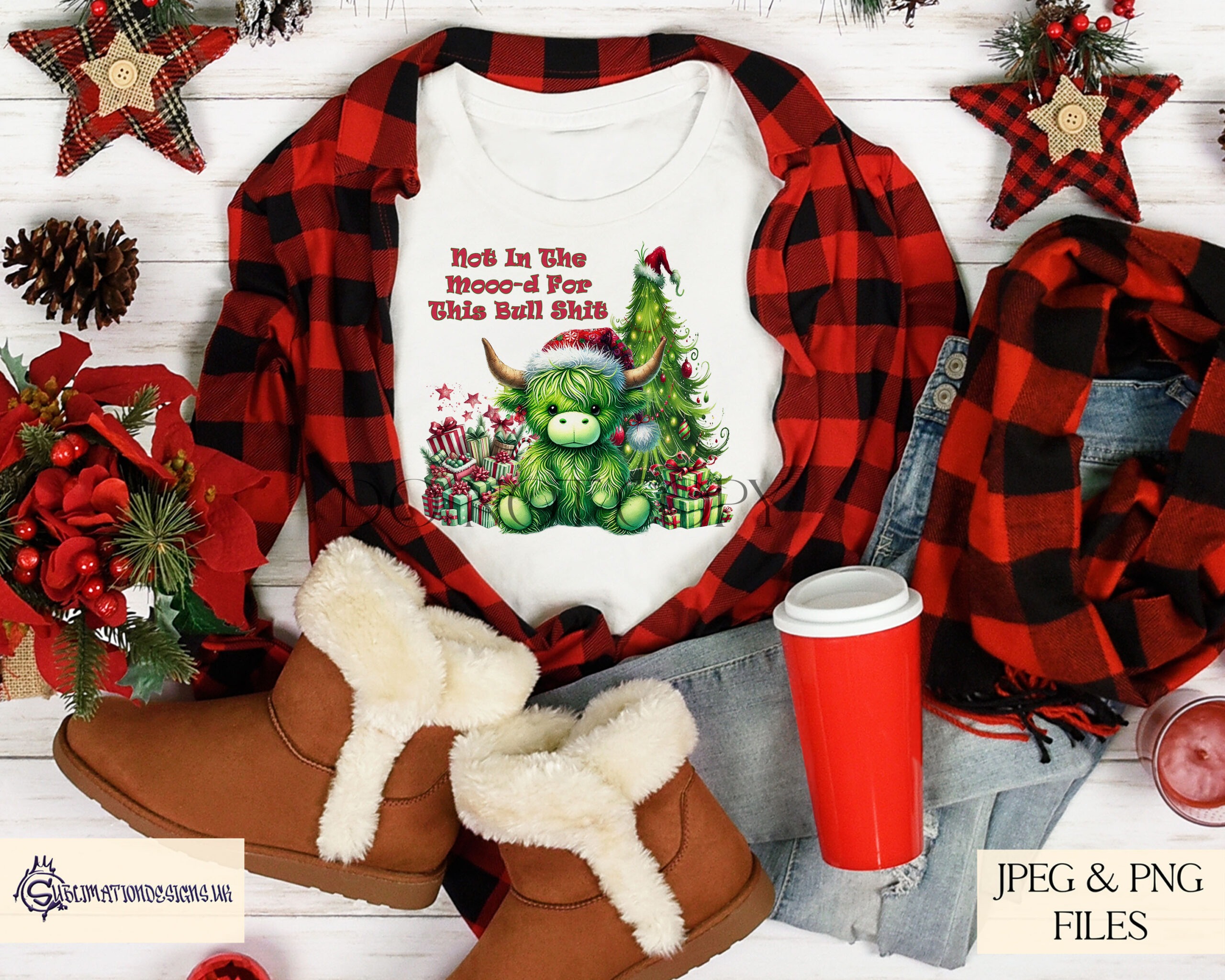 Comedy Grumpy Green Christmas Designs Bundle. Highland Cow, Teddy Bear & Sheep | 12 Designs | JPEG & PNG | 9 Mock-Ups | Commercial Licence