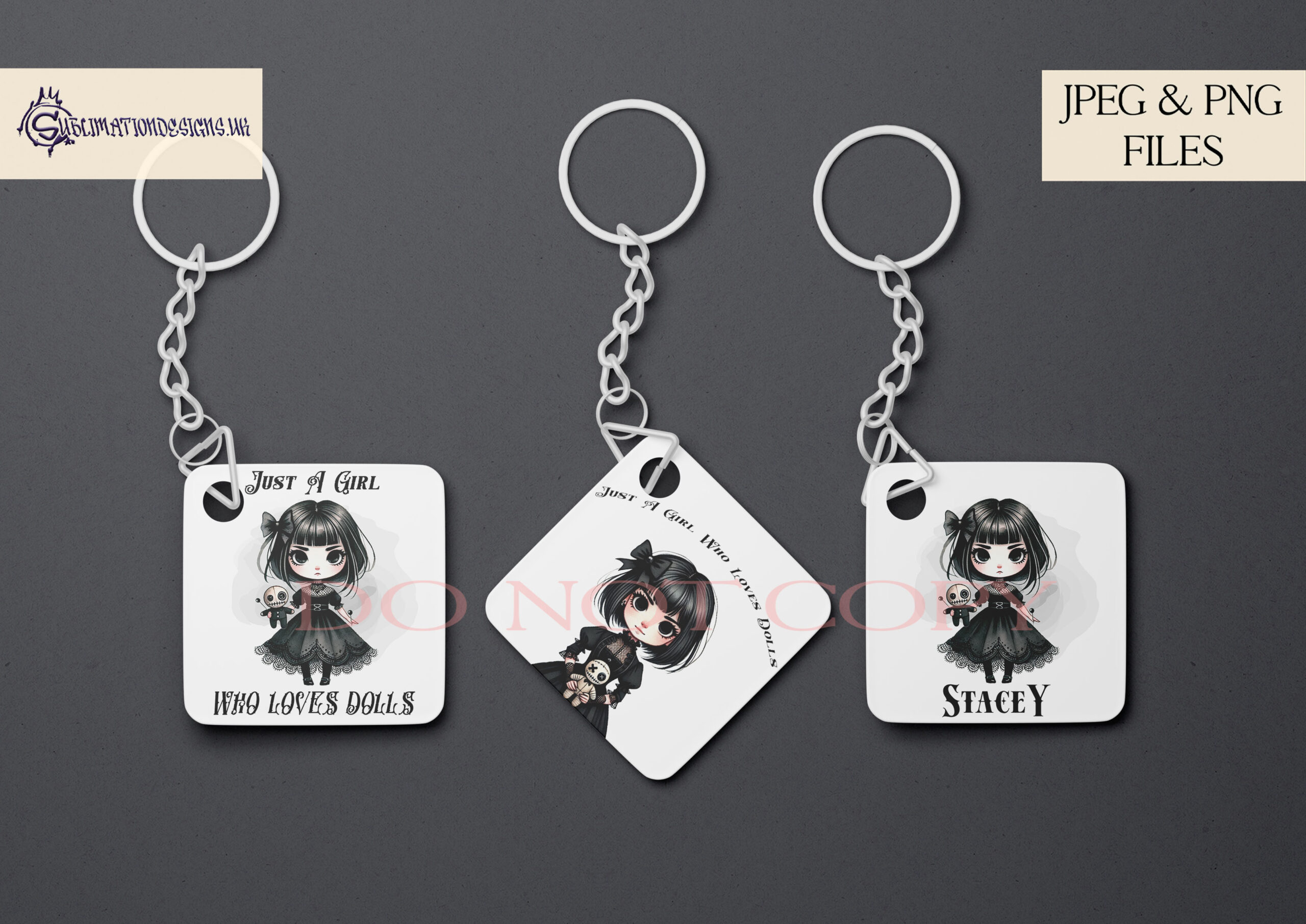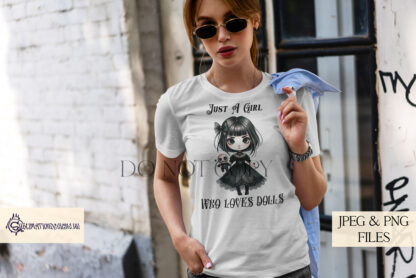 - 3 Texted Designs: Featuring the phrase “Just a Girl That Loves Dolls.”