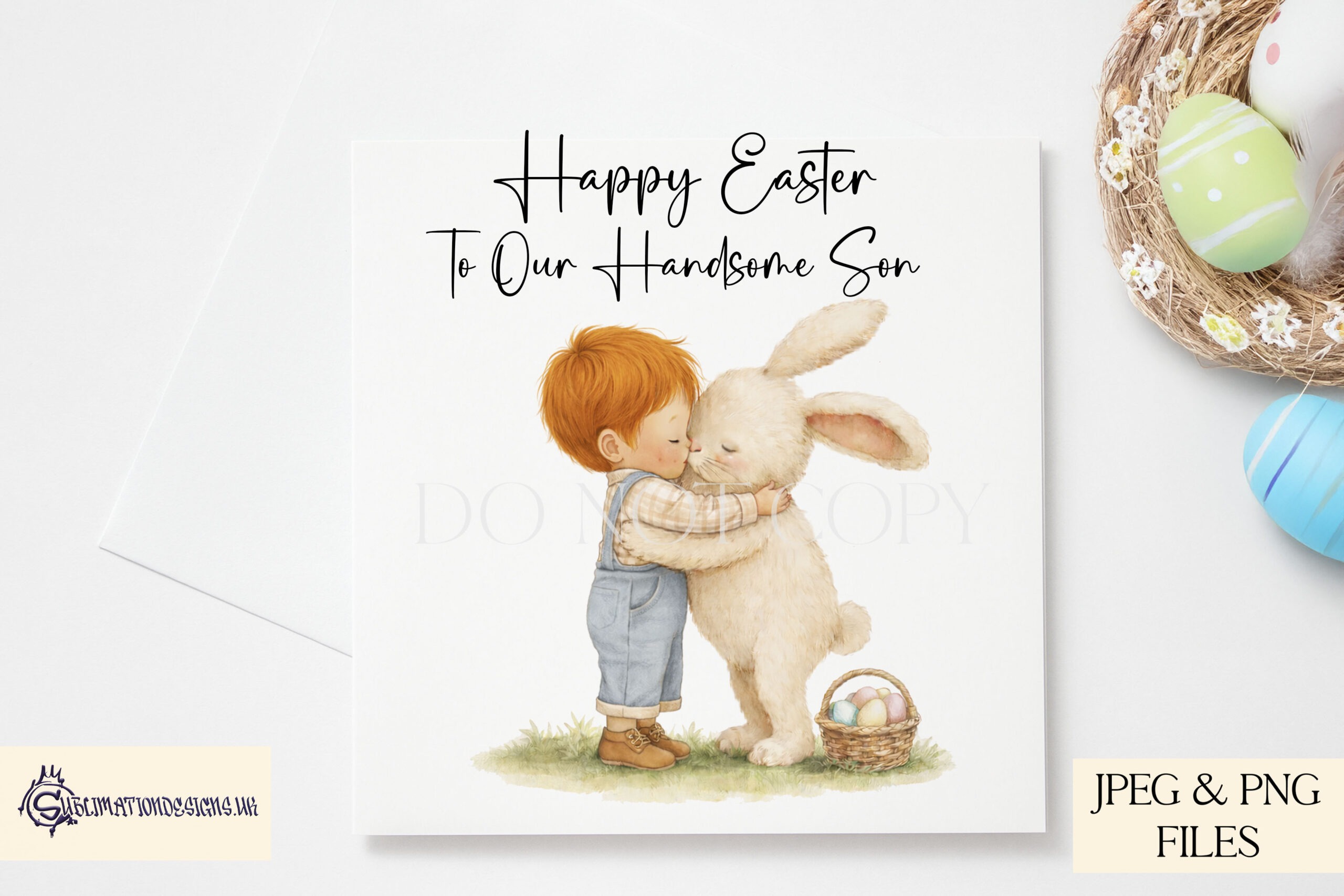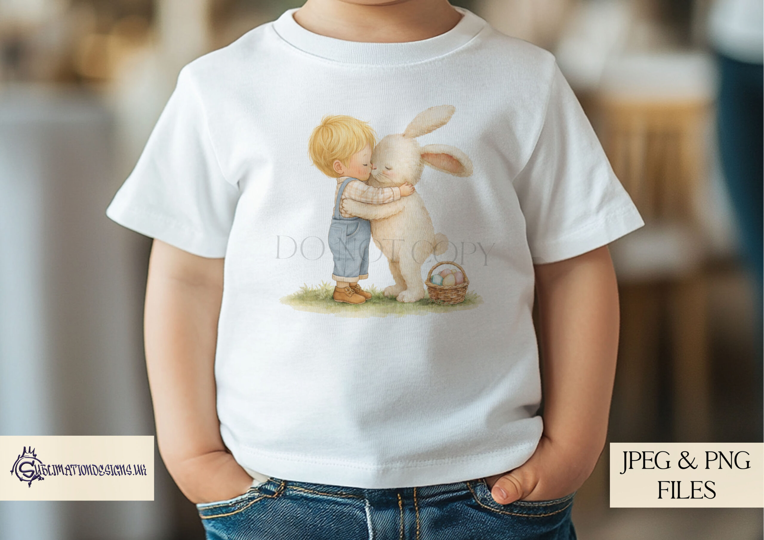 Easter Bunny Hugging Boys Designs Set of 8 | Textless Designs | JPEG and PNG | 3 Mock Ups | Commercial Licence