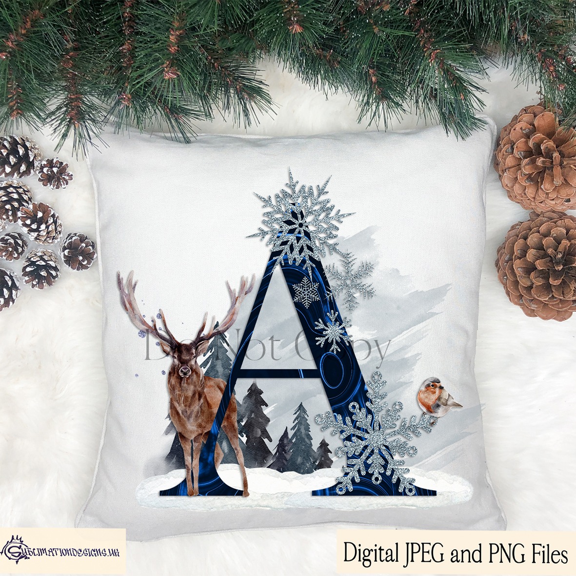 Elegant Winter Animal Alphabet – Navy Blue Design Set, 26 Letters with Winter Animal Compositions