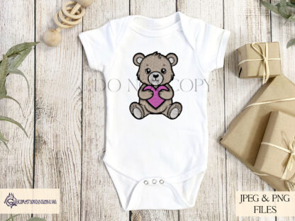 This Embroidered Love heart Teddy Bear Clip Art Set is ready for instant download, making it easy to create adorable and meaningful gifts.