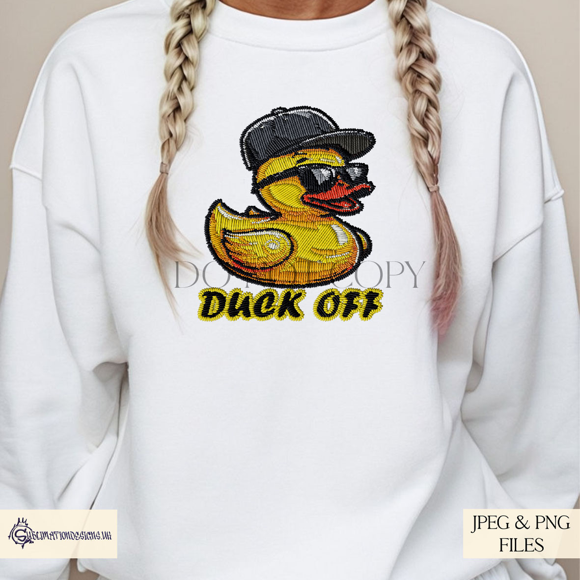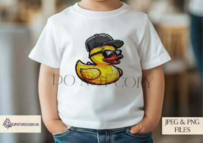 Introducing the Embroidery-Style Comedy Duck Design Set, a fun and light-hearted collection featuring a cool-looking rubber duck in an embroidered art style. This set of two designs brings a playful twist to embroidered-style artwork, making it perfect for humorous gifts, novelty apparel, and quirky home décor.