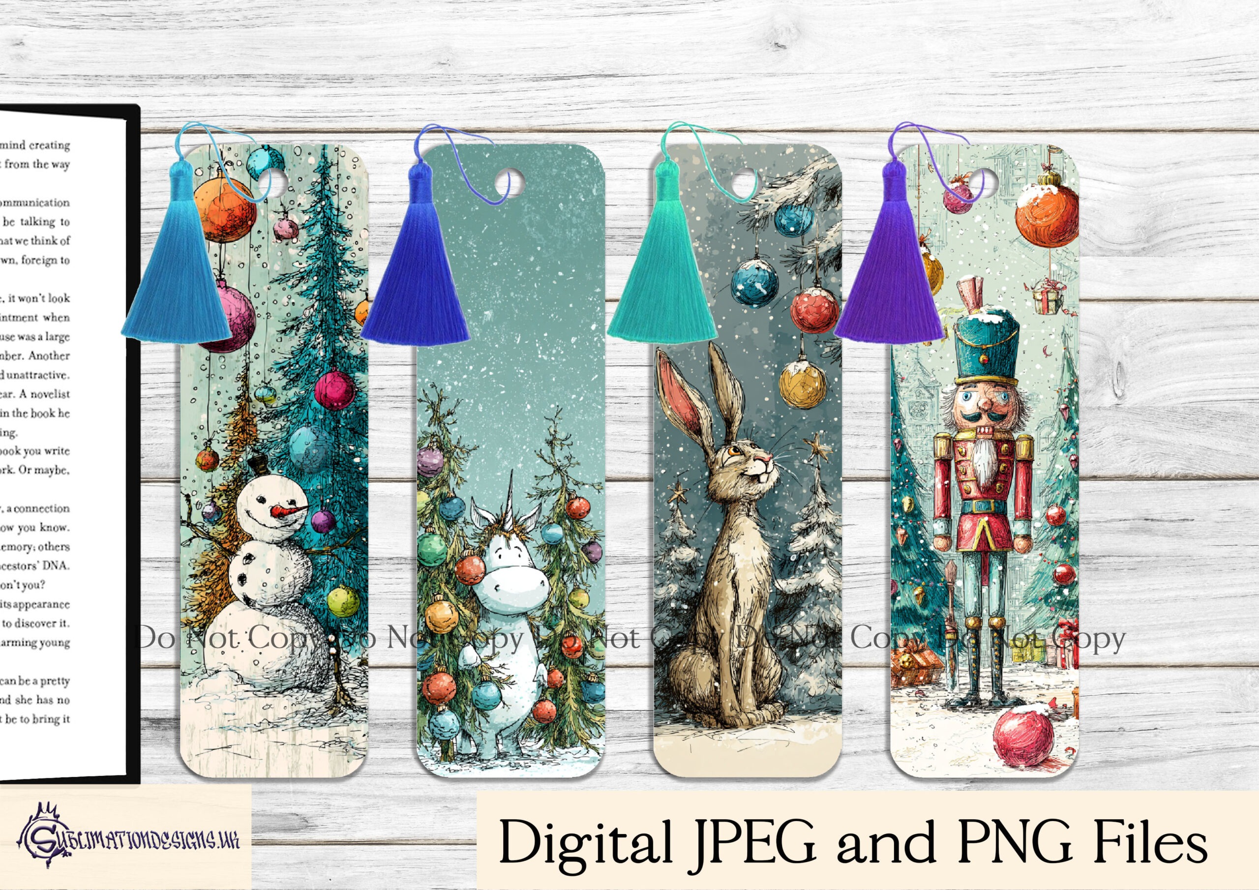 Enchanted Christmas Sketch Bookmark Bundle | 57 Designs | Christmas Animals, Unicorns, and More | JPEG & PNG | 3 Mock-Ups | Commercial Licence