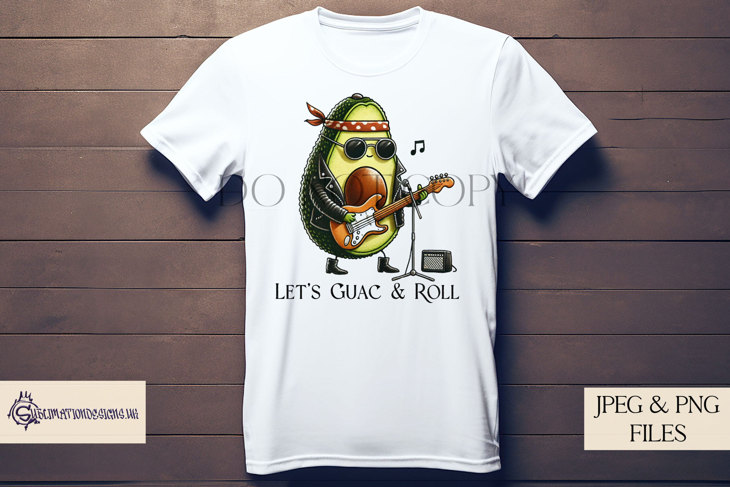 The Guac and Roll Comedy Design Set is ready for instant download, making it easy to create fun, rock-inspired products!