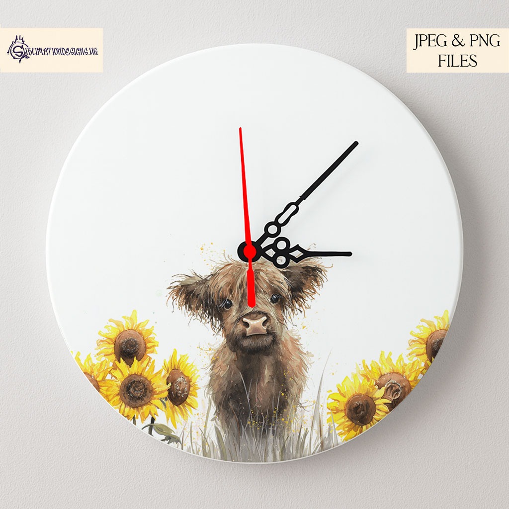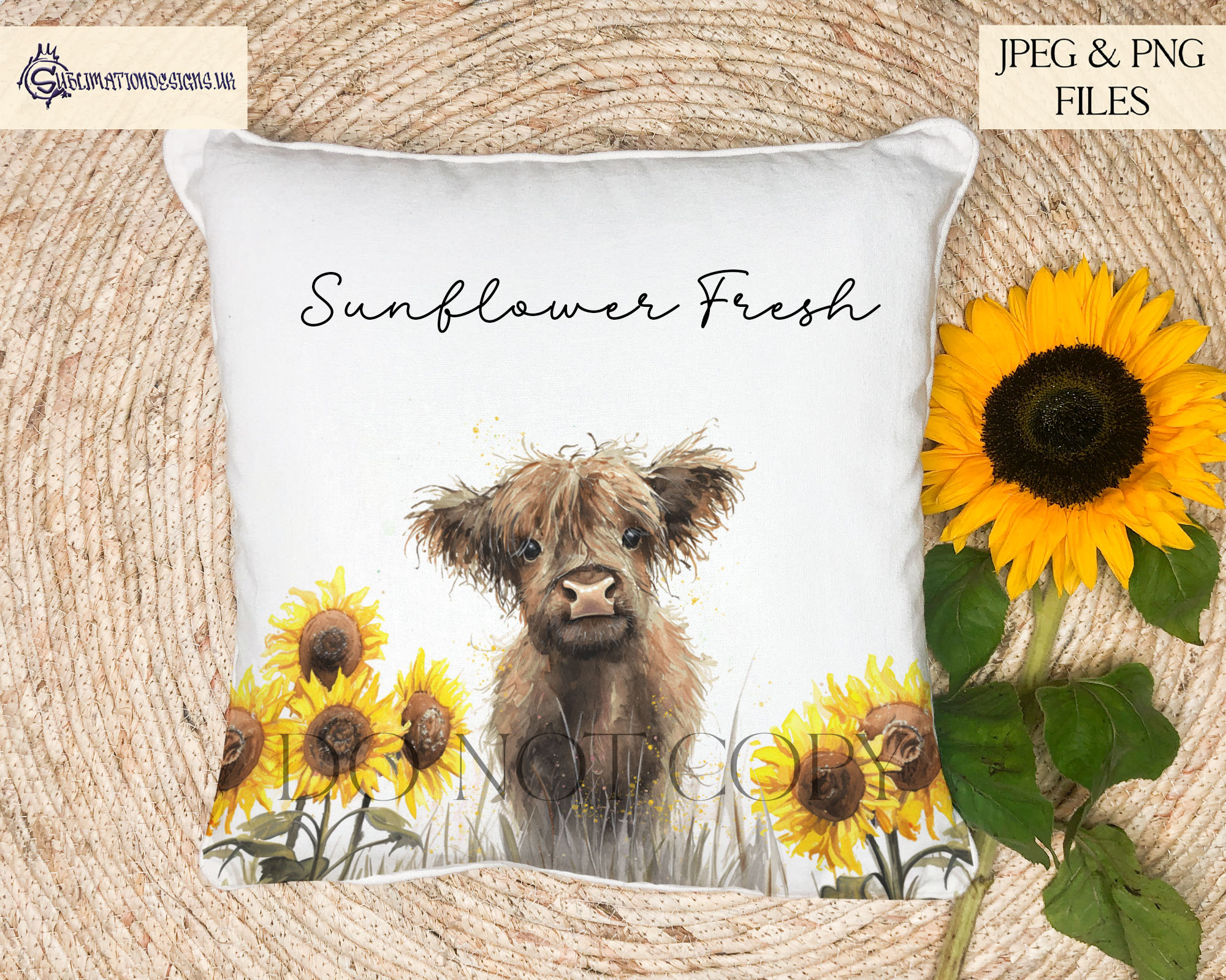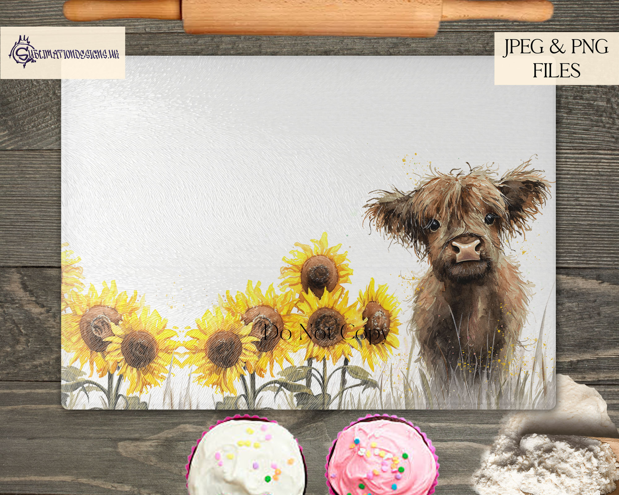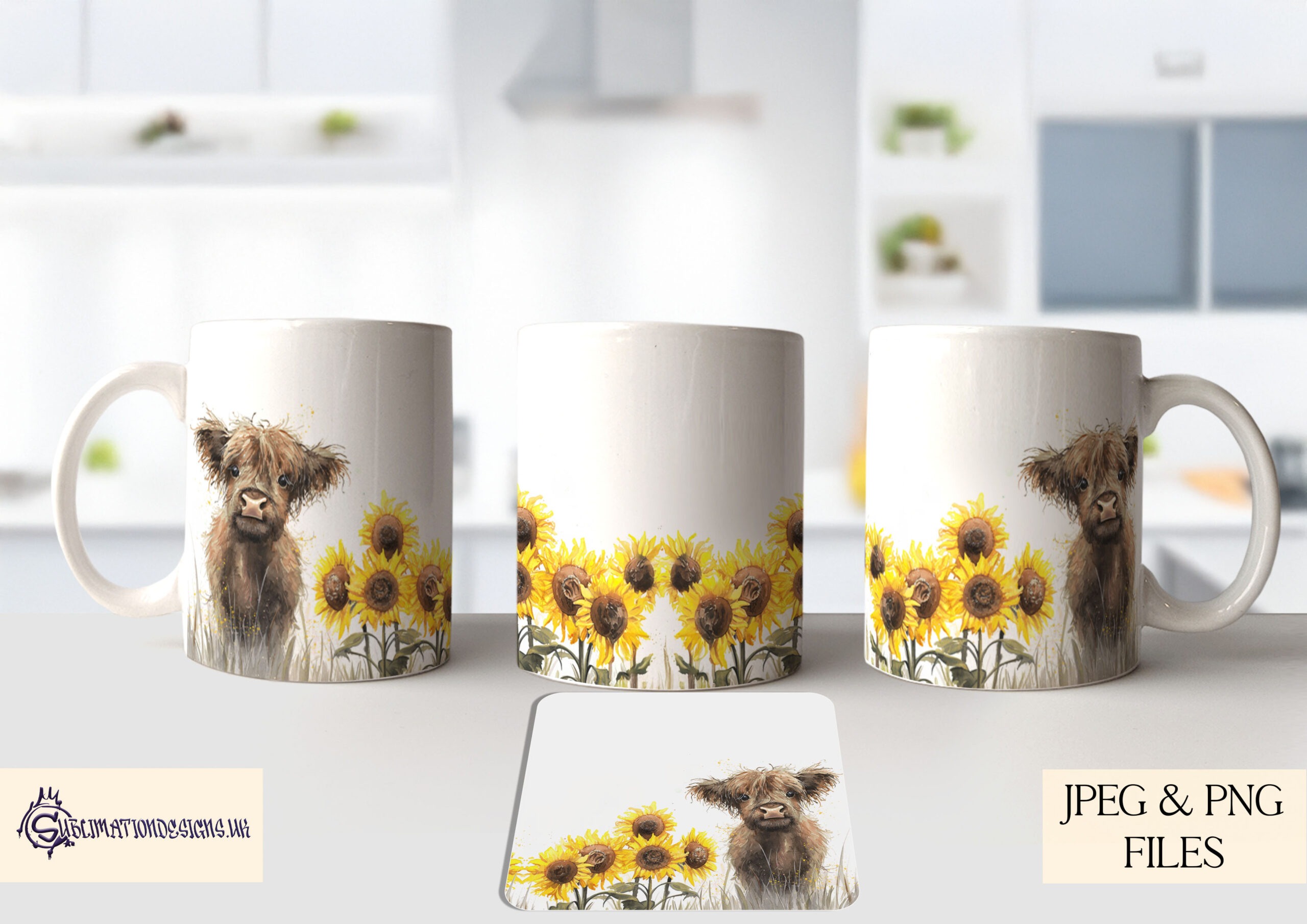 Highland Cow Calf in Sunflower Field Limited Edition Set of 7 Designs | JPEG and PNG | 6 Mock Ups | Commercial Licence