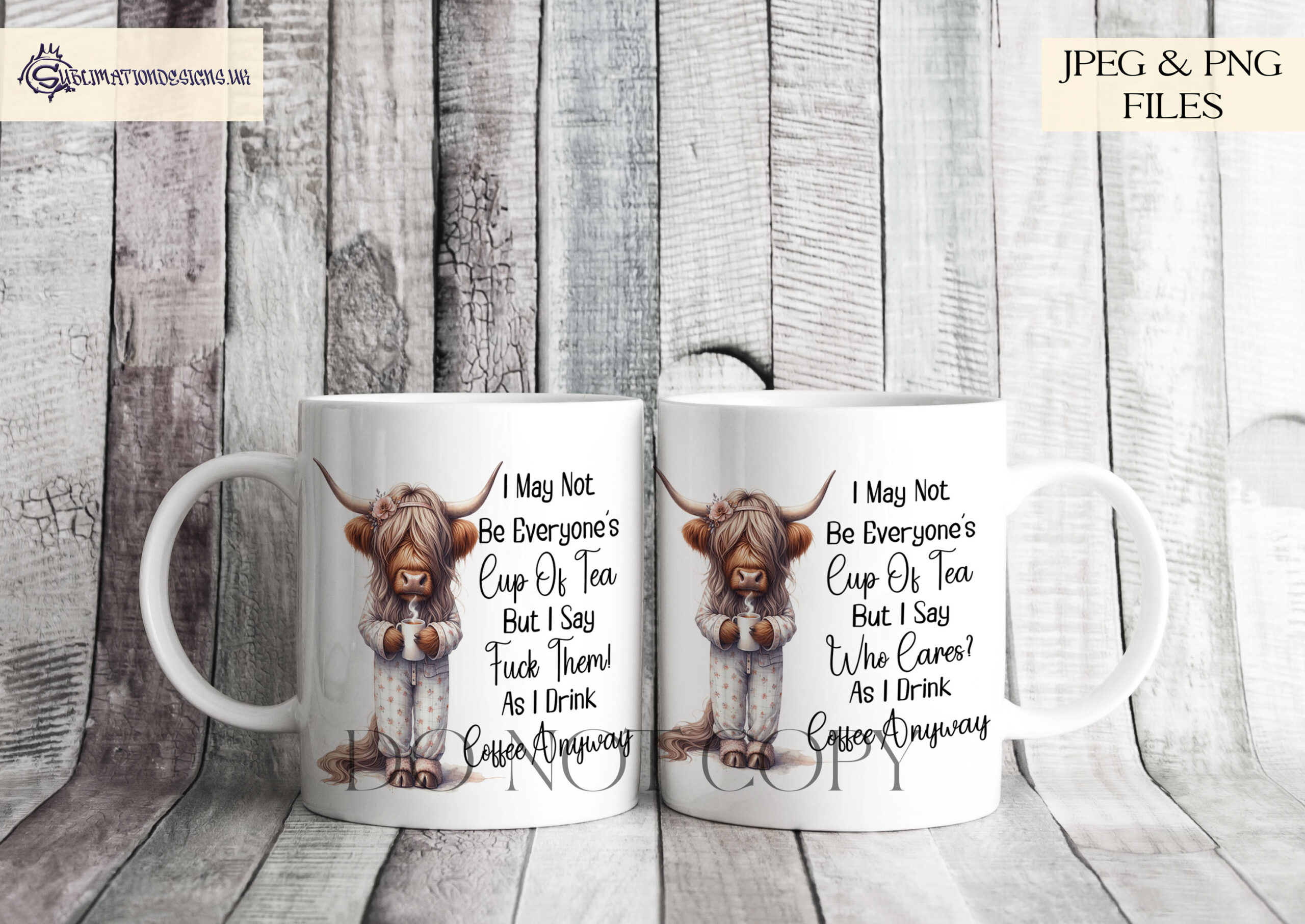 Highland Cow Comedy Designs Set of 10 – “Not Everyone’s Cup of Tea” Coffee Humour Collection