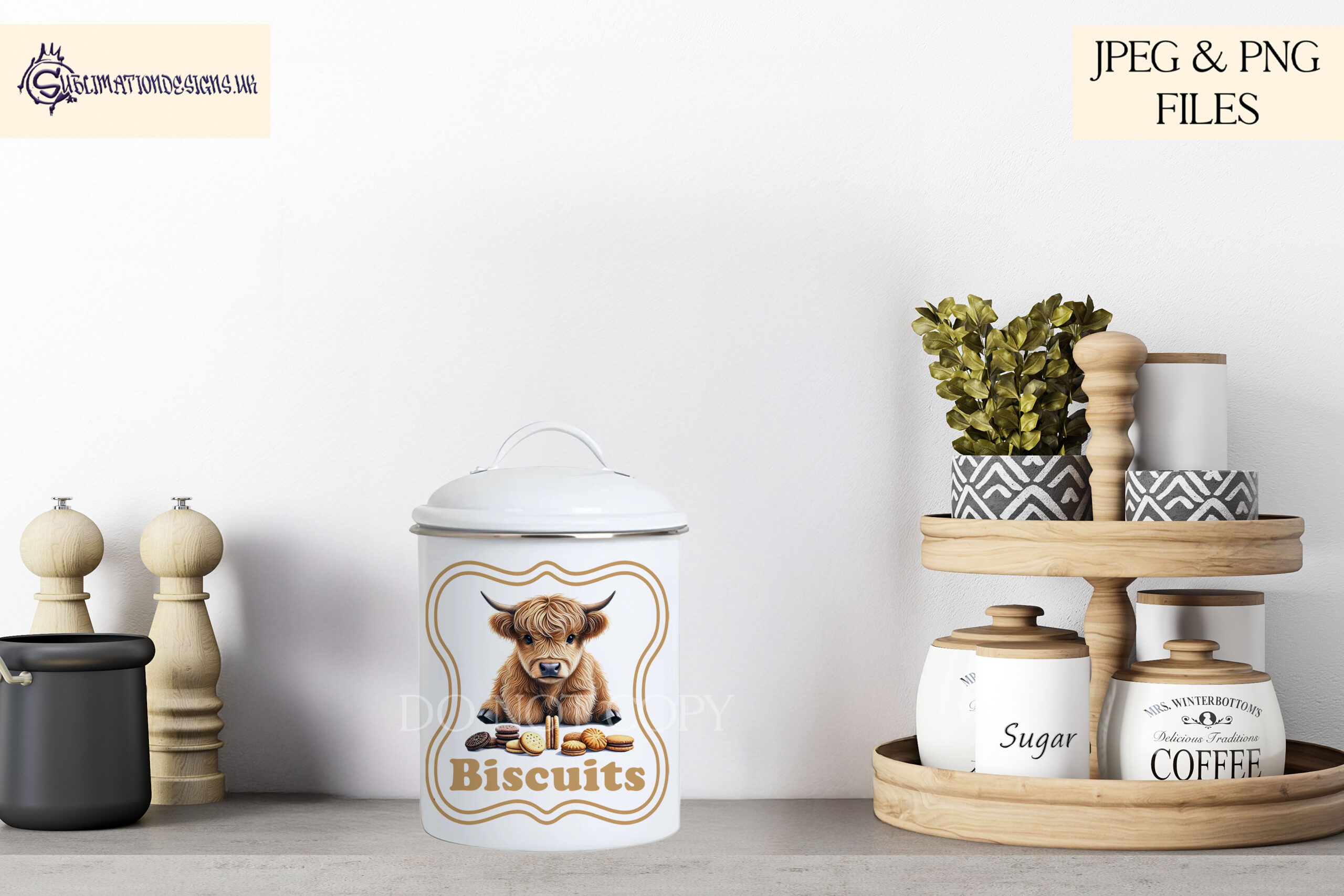 By popular request, the Highland Cow Cookie Jar Designs Set is here – the perfect follow-up to our best-selling tea, coffee, and sugar jar sets. This collection features two adorable Highland cows, one surrounded by a pile of biscuits and the other with a stack of cookies, each featured on label-style designs ideal for storage jars. Also included are four separate elements for use on mugs, coasters, or other matching accessories. A sweet and playful addition to your kitchen crafting range!