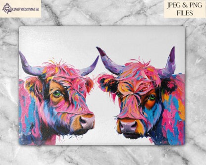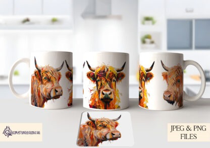 The Highland Cow Oil Painting Design Set is ready for instant download, making it easy to create high-quality and visually striking sublimation products.