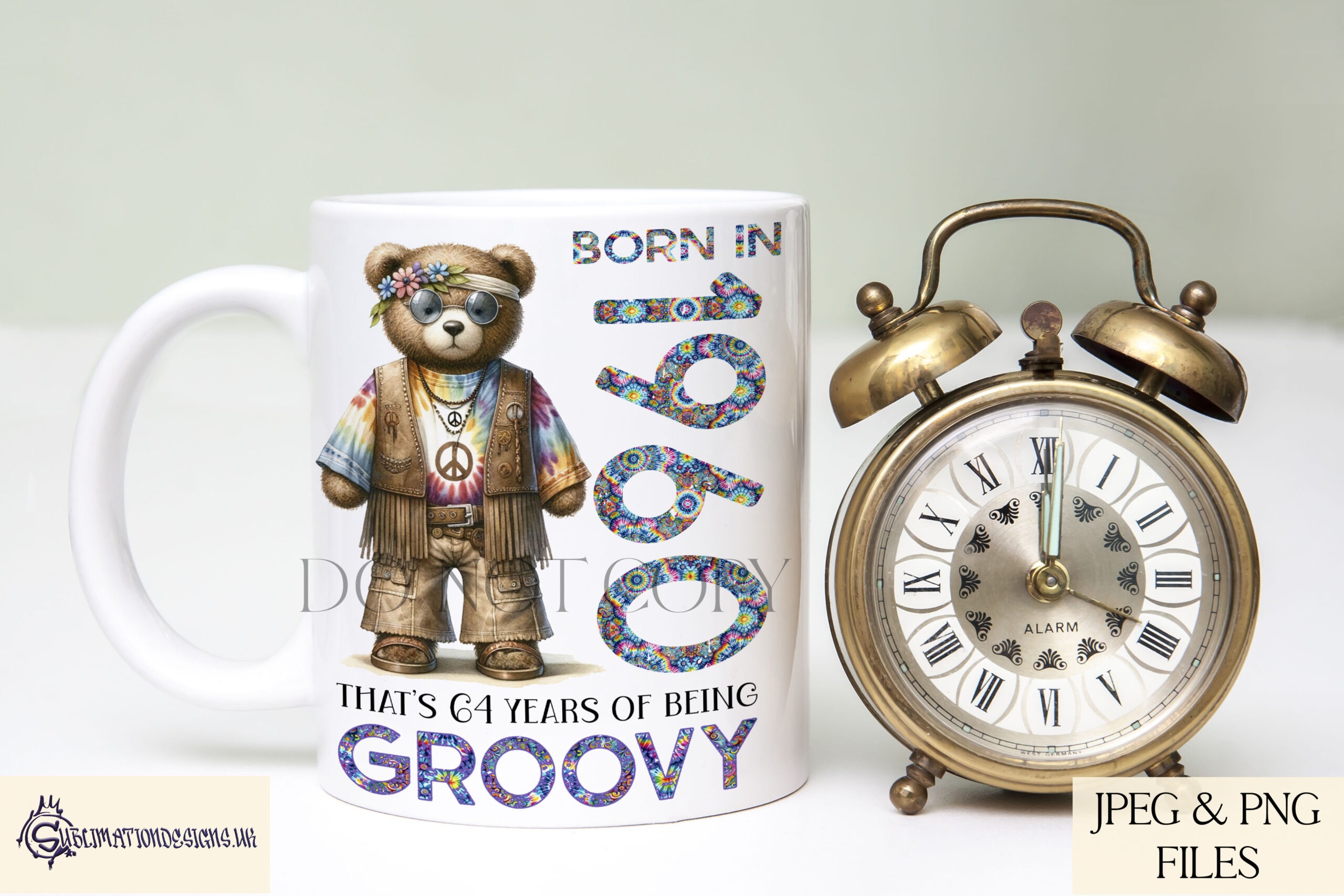 This Hippy Birth Year Bears & Camper Vans Design Set is ready for instant download, giving you the flexibility to create custom retro gifts in no time!