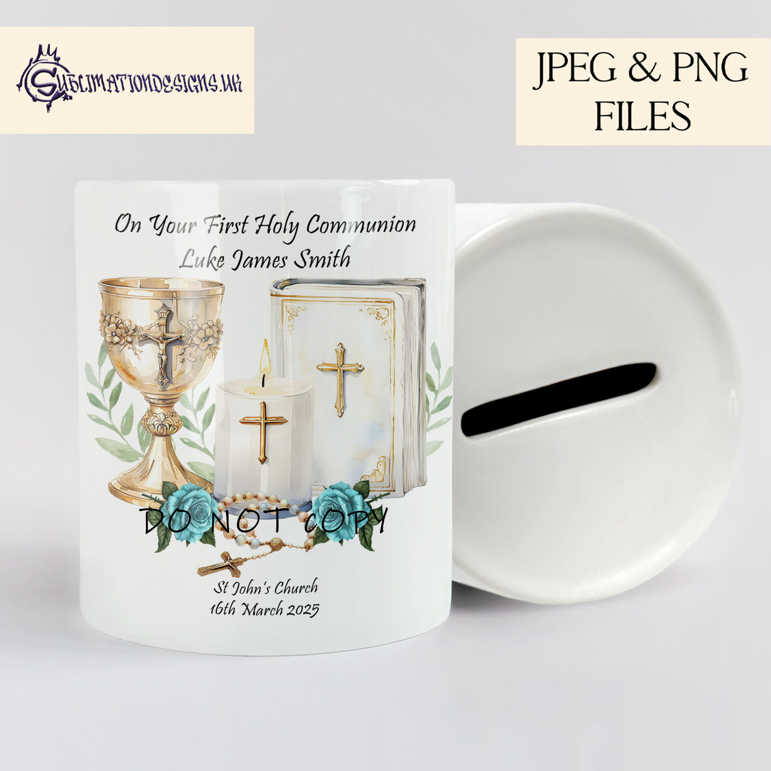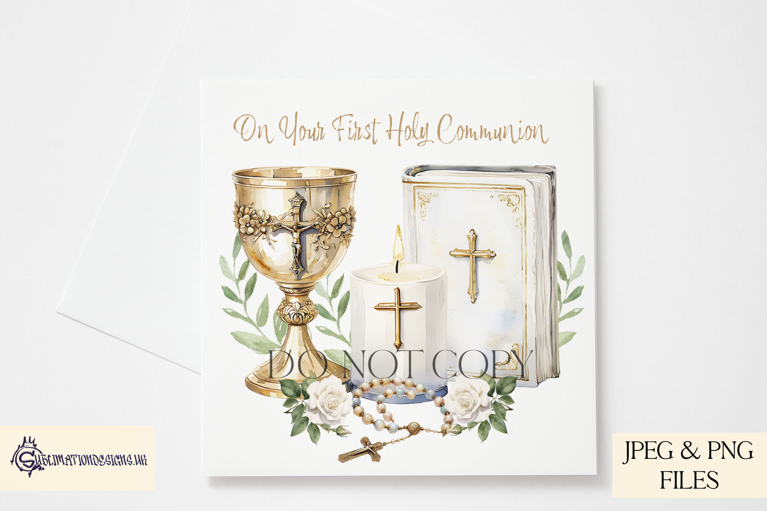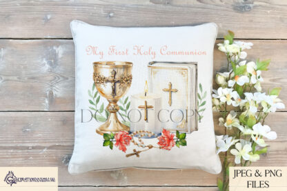 - Text Options: Includes both textless versions and “My First Holy Communion” wording