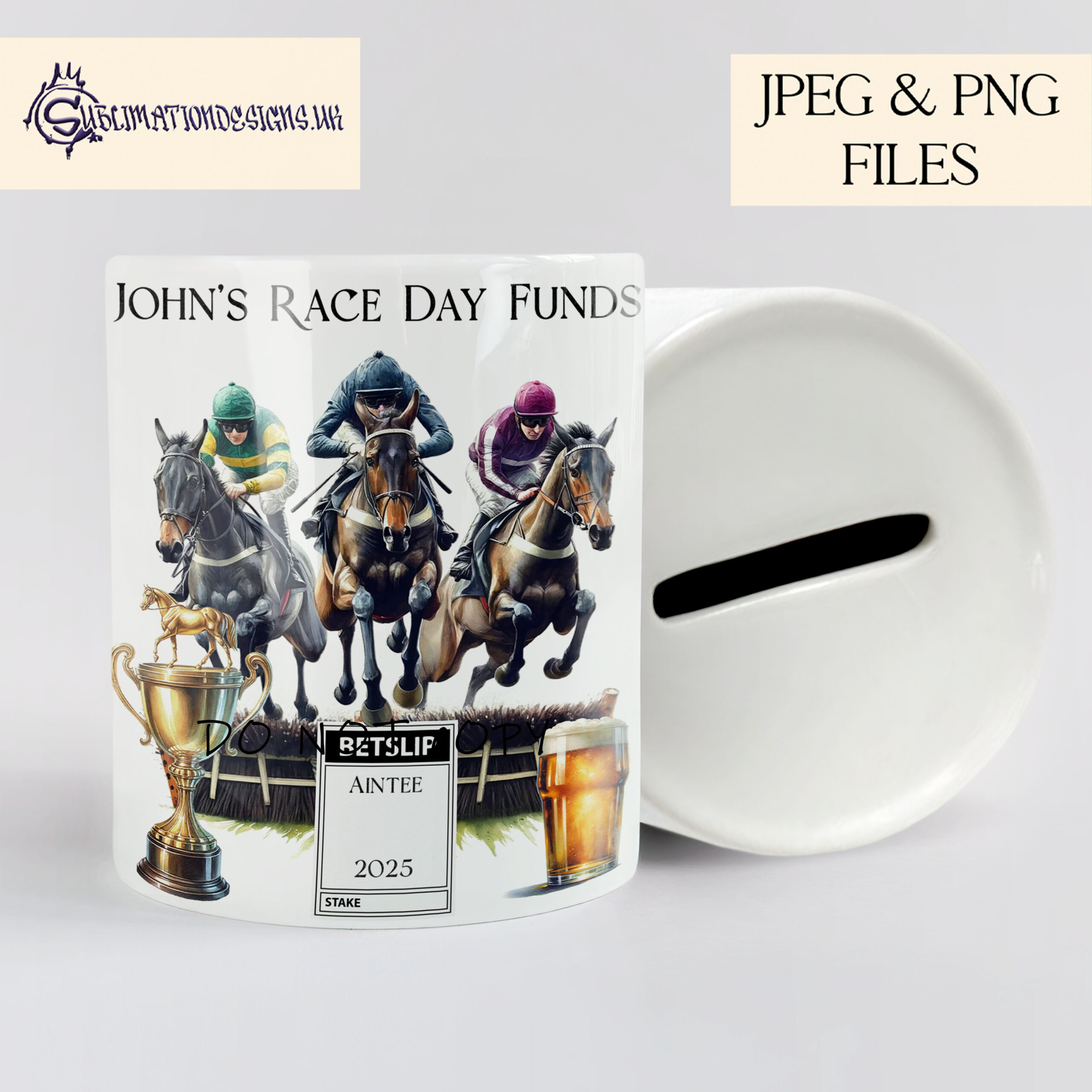 Each design includes a blank bet slip for personalisation, plus accessory variations featuring a flat cap, lager, whiskey, or ale. Whether you’re crafting for racing fans or looking for unique event memorabilia, this set is a must-have for equestrian-themed projects.