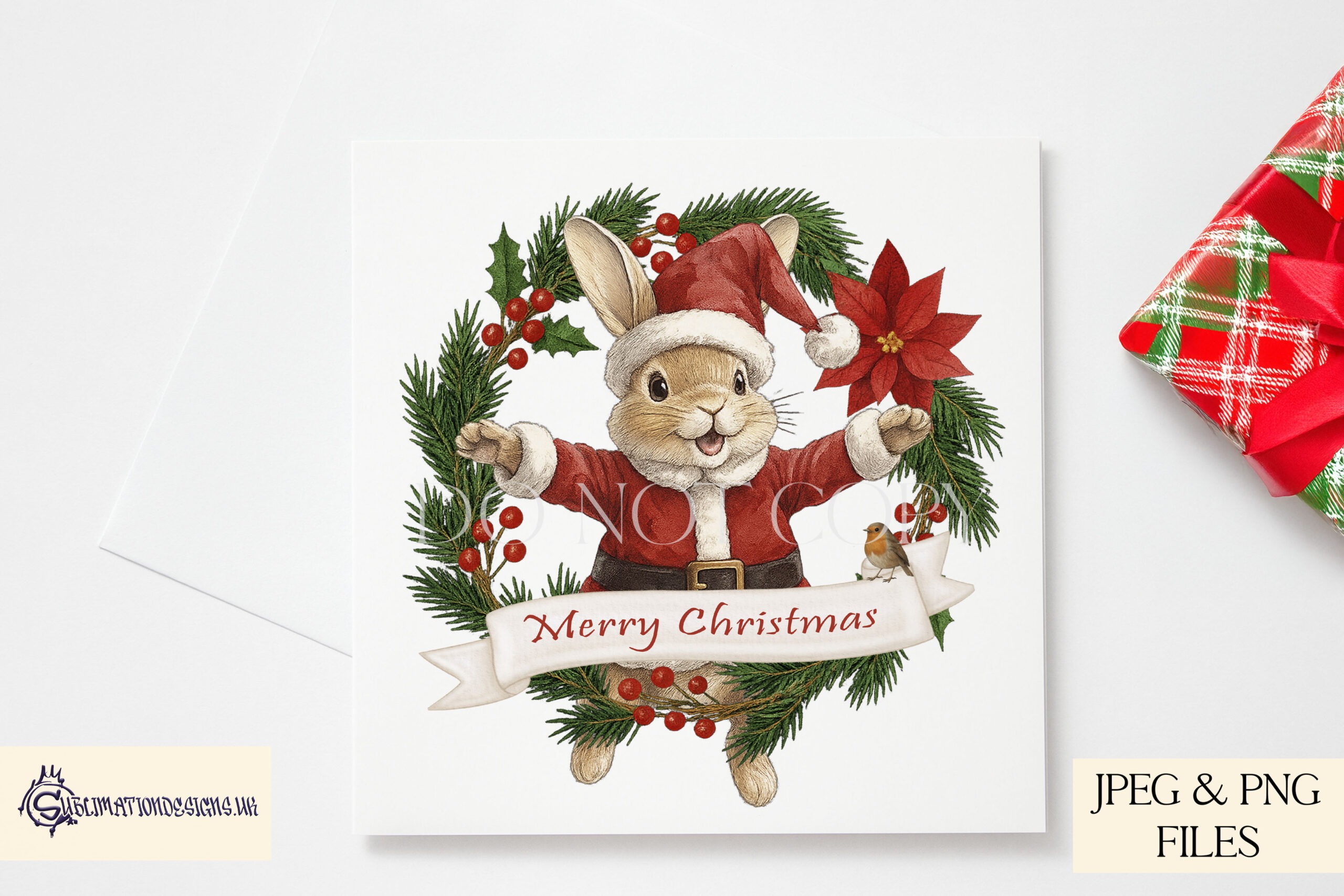 Joyful Christmas Bunny Designs Set – 6 Festive Bunny Designs | JPEG & PNG | 3 Mock-Ups | Commercial Licence