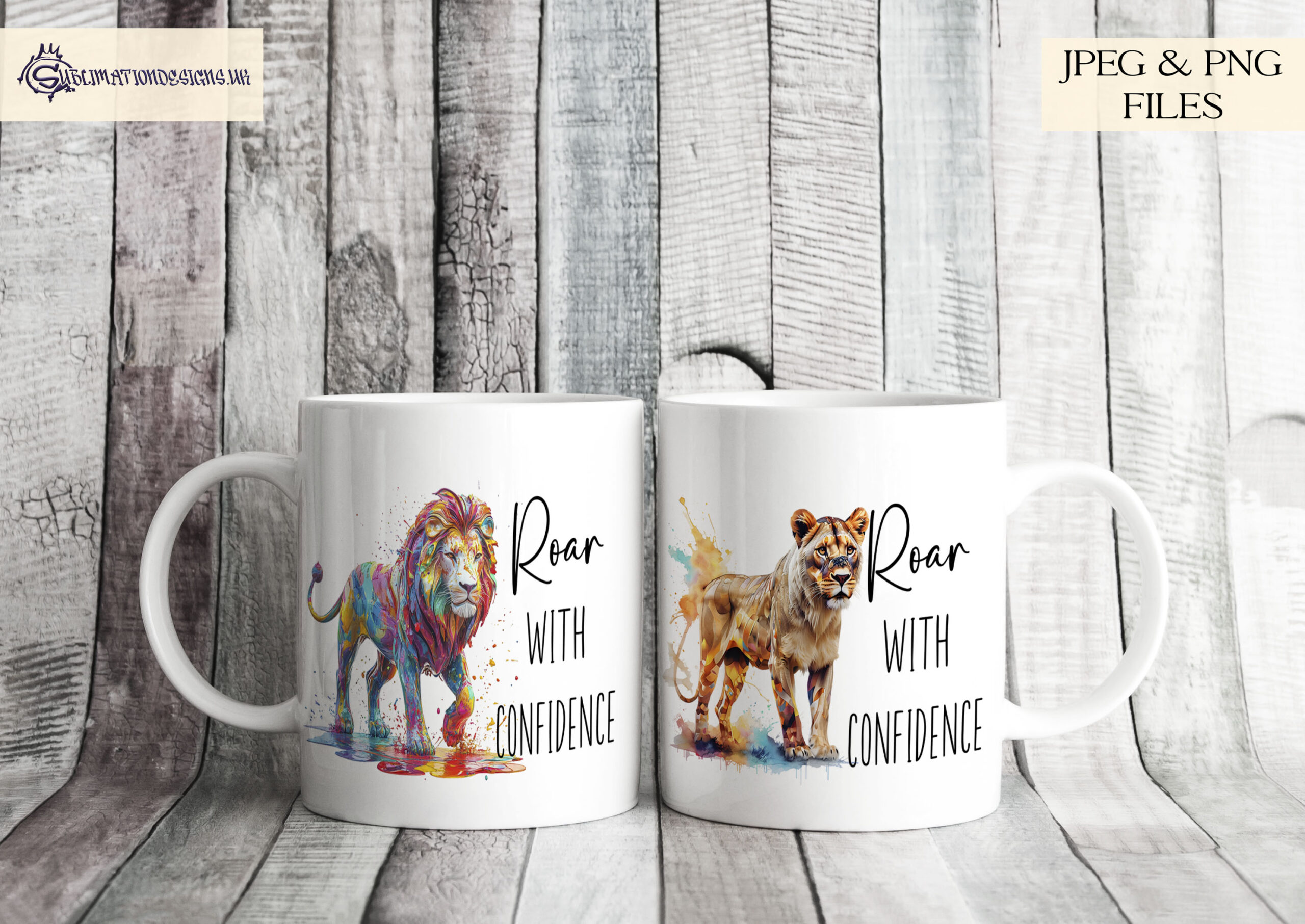 This Lion & Lioness Positivity Design Set is ready for instant download, making it easy to create eye-catching and empowering gifts.