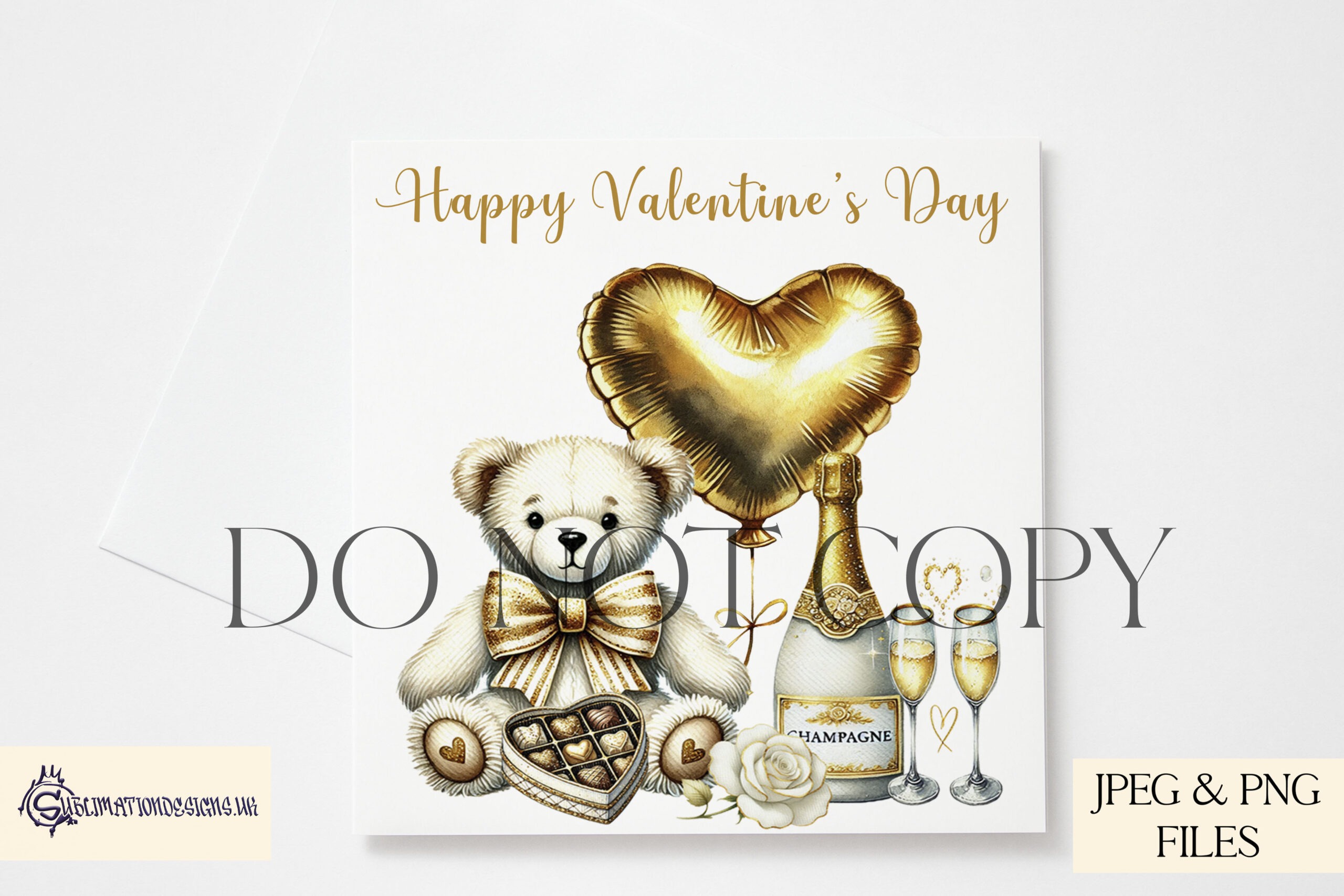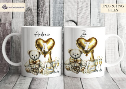 Celebrate love in style with our Love Alphabet White and Gold Design Set. This elegant collection features a teddy bear holding a box of chocolates, champagne, and a love heart balloon. The set includes 27 designs – one textless option and an A-Z alphabet where each balloon displays a letter, offering endless personalisation possibilities.