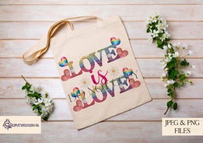 - High-quality JPEG and PNG files featuring the “Love Is Love” rainbow-themed design.