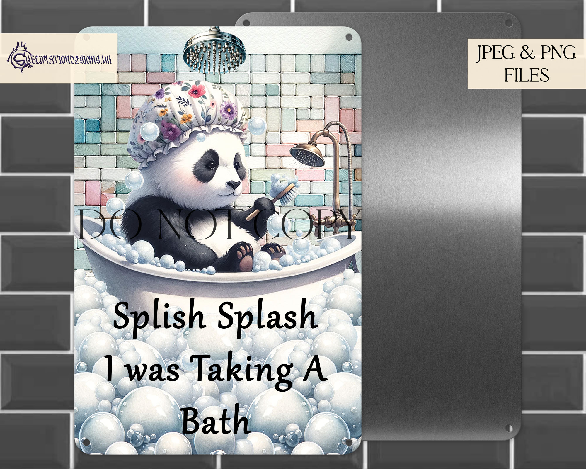 - Pandas: 2 designs with plain and floral shower caps.