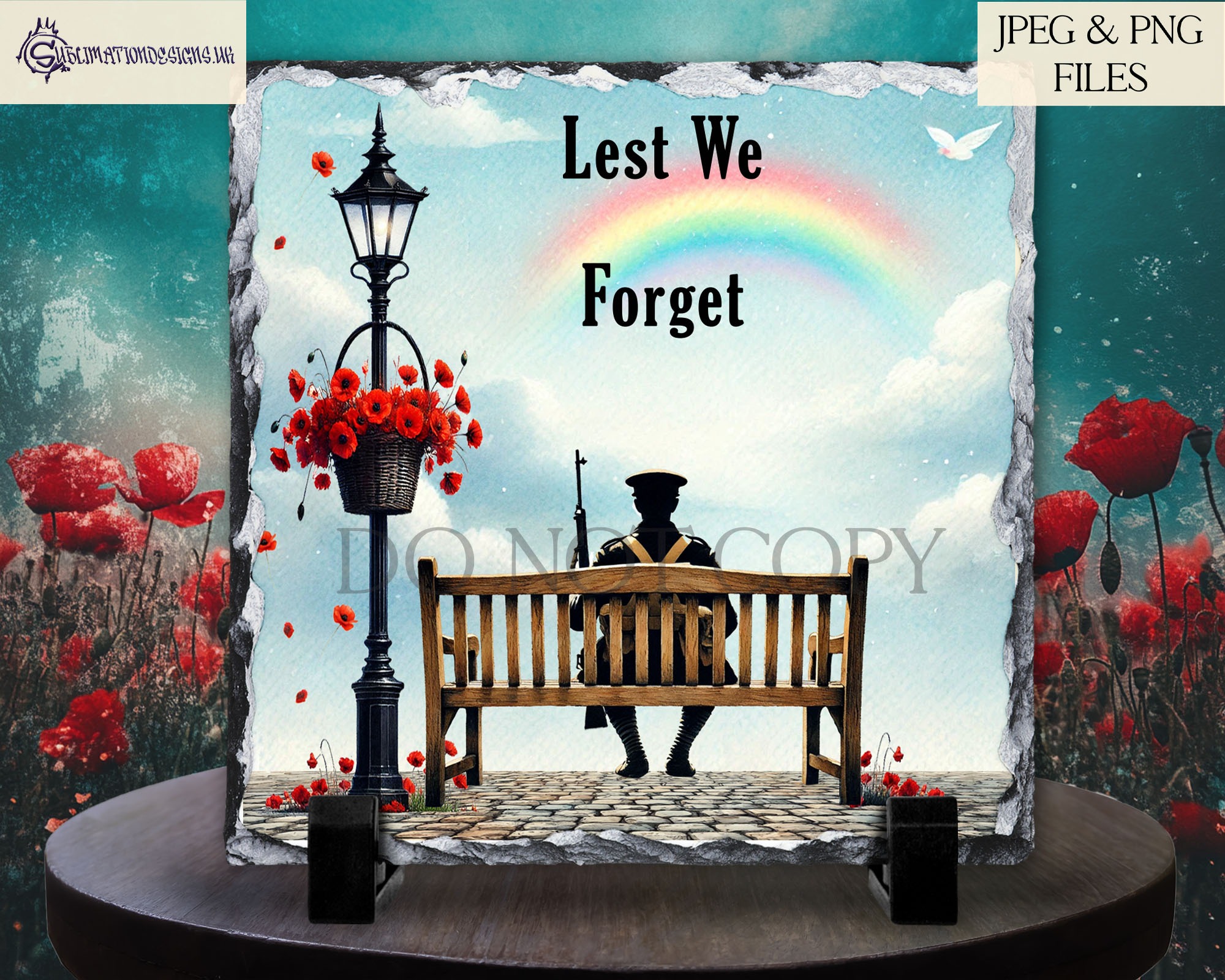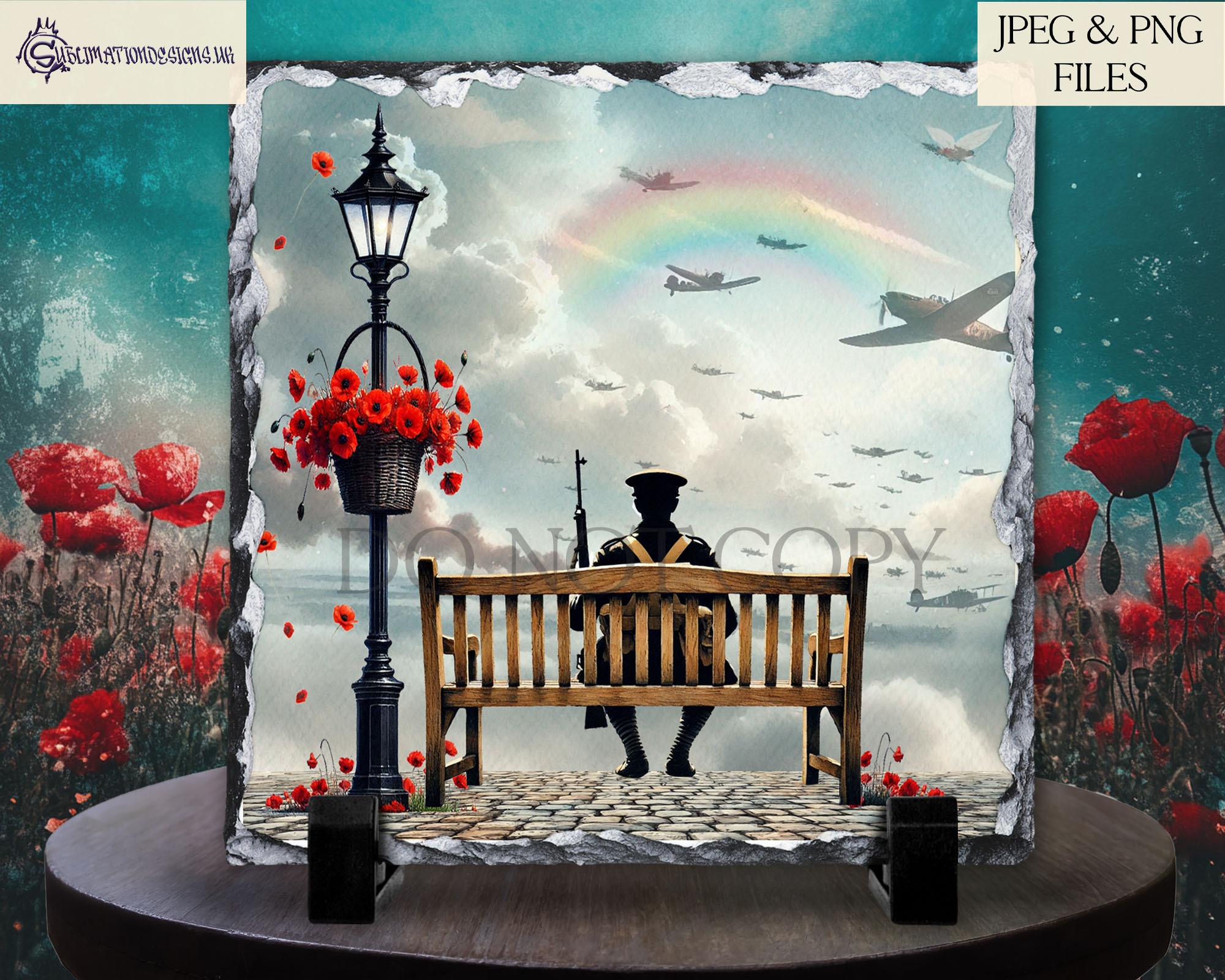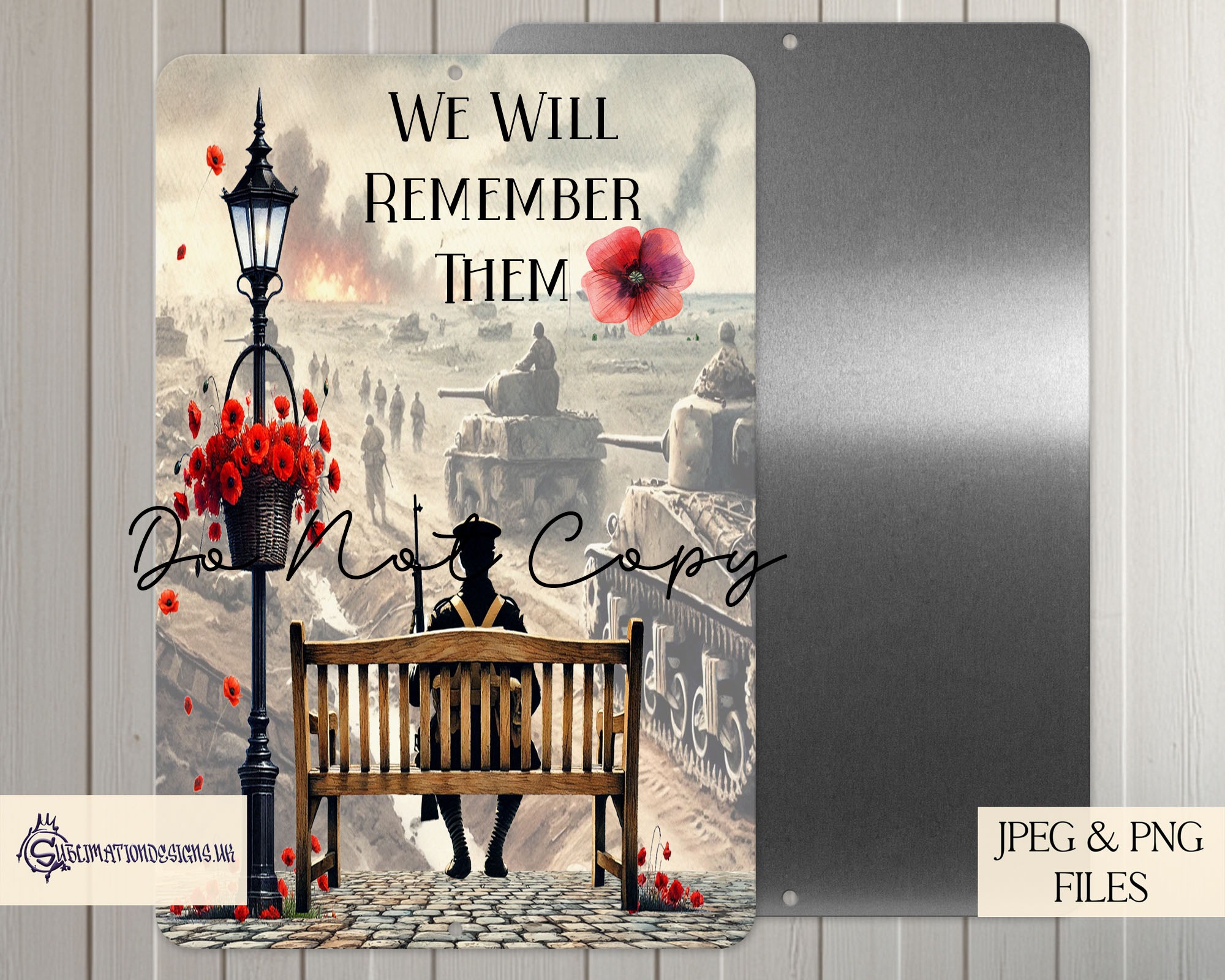 Memorial Bench Poppy Designs Set – 8 Unique Remembrance Designs | JPEG & PNG | 5 Mock-Ups | Commercial Licence