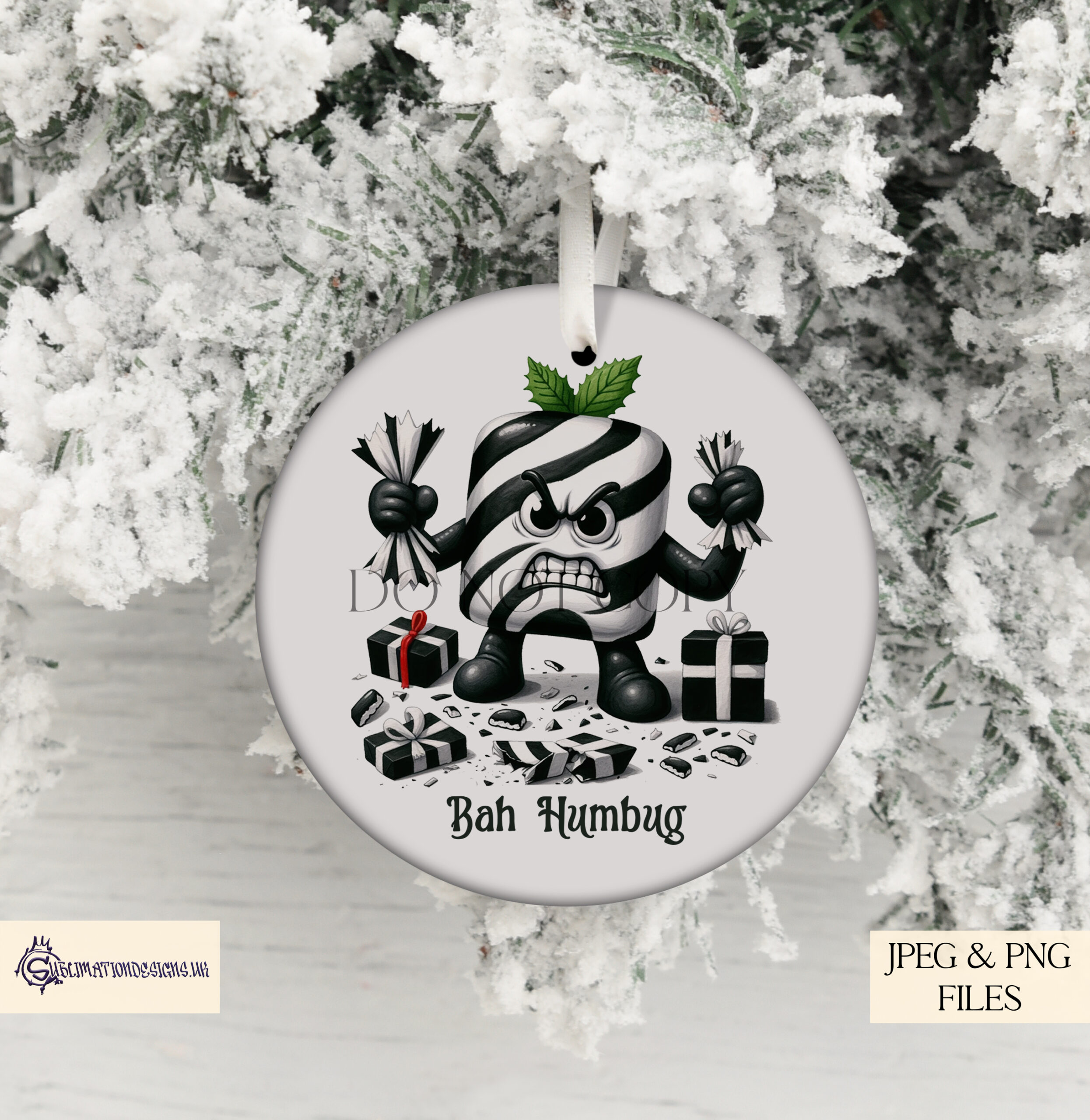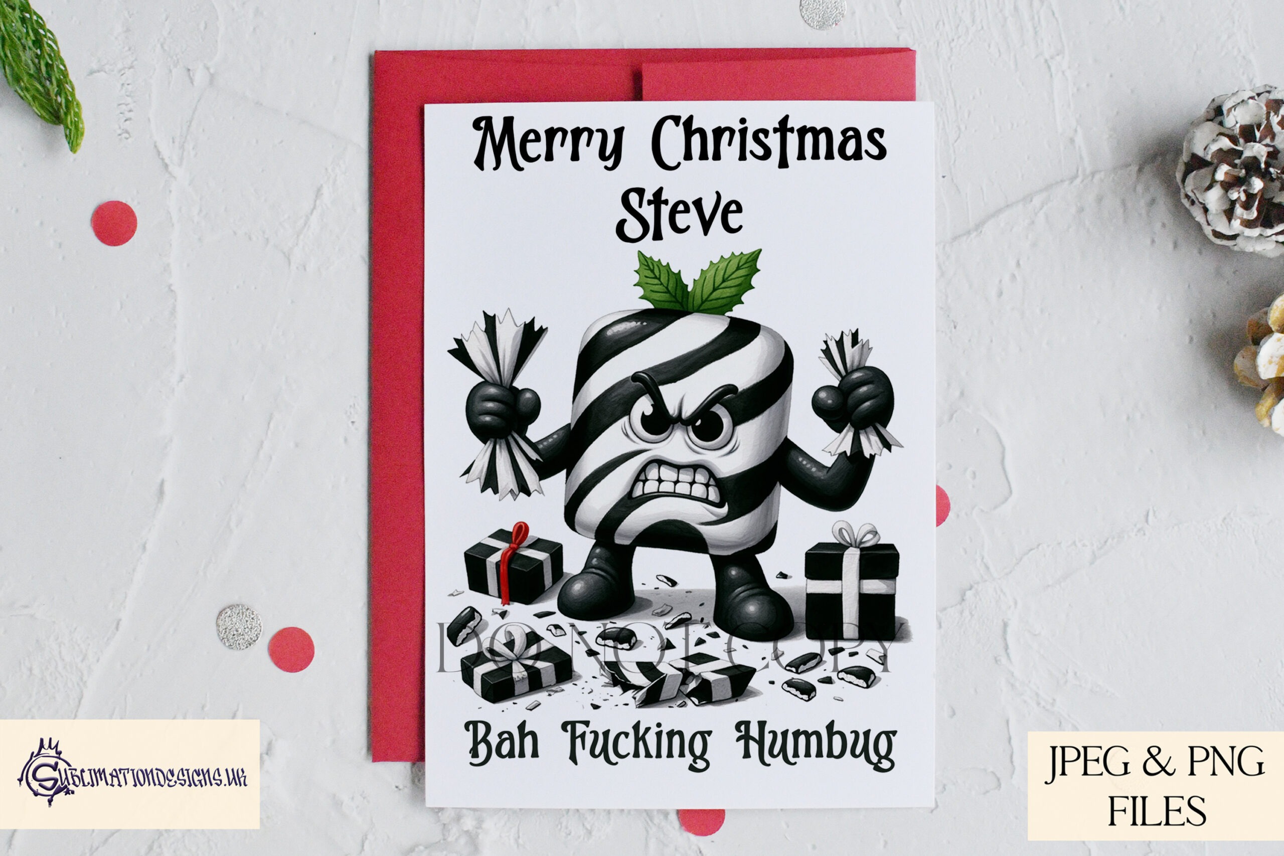 The set includes 3 variations: a textless design for a subtle comedic effect, a “Bah Humbug” version for classic holiday humour, and a more daring “Bah Fucking Humbug” design for bold novelty gifts. Provided in both JPEG and PNG formats, these designs are versatile enough for T-shirts, mugs, holiday cards, and more.