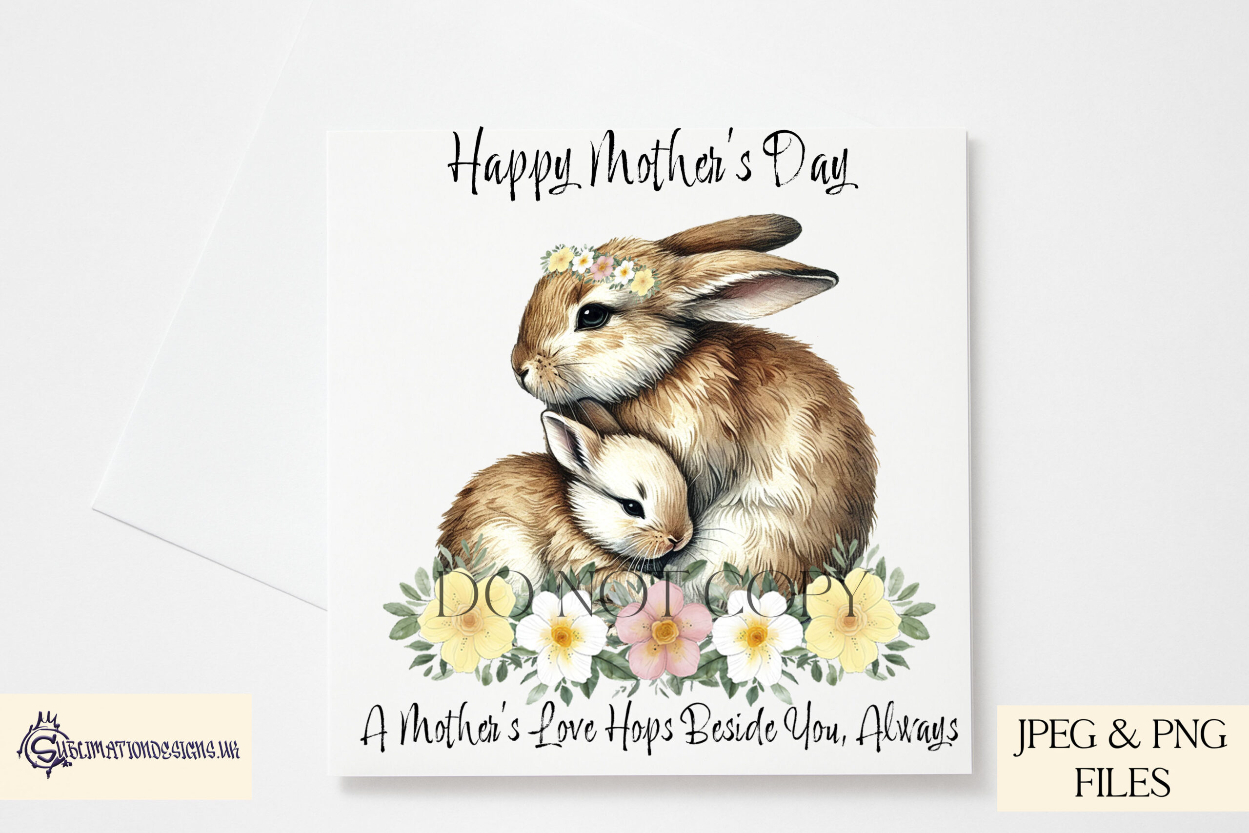 Designed for sublimation printing and crafting, these high-resolution designs are ideal for personalised gifts, such as mugs, cushions, framed prints, and greeting cards. The delicate rabbit artwork and sentimental messages make this a timeless and meaningful design.