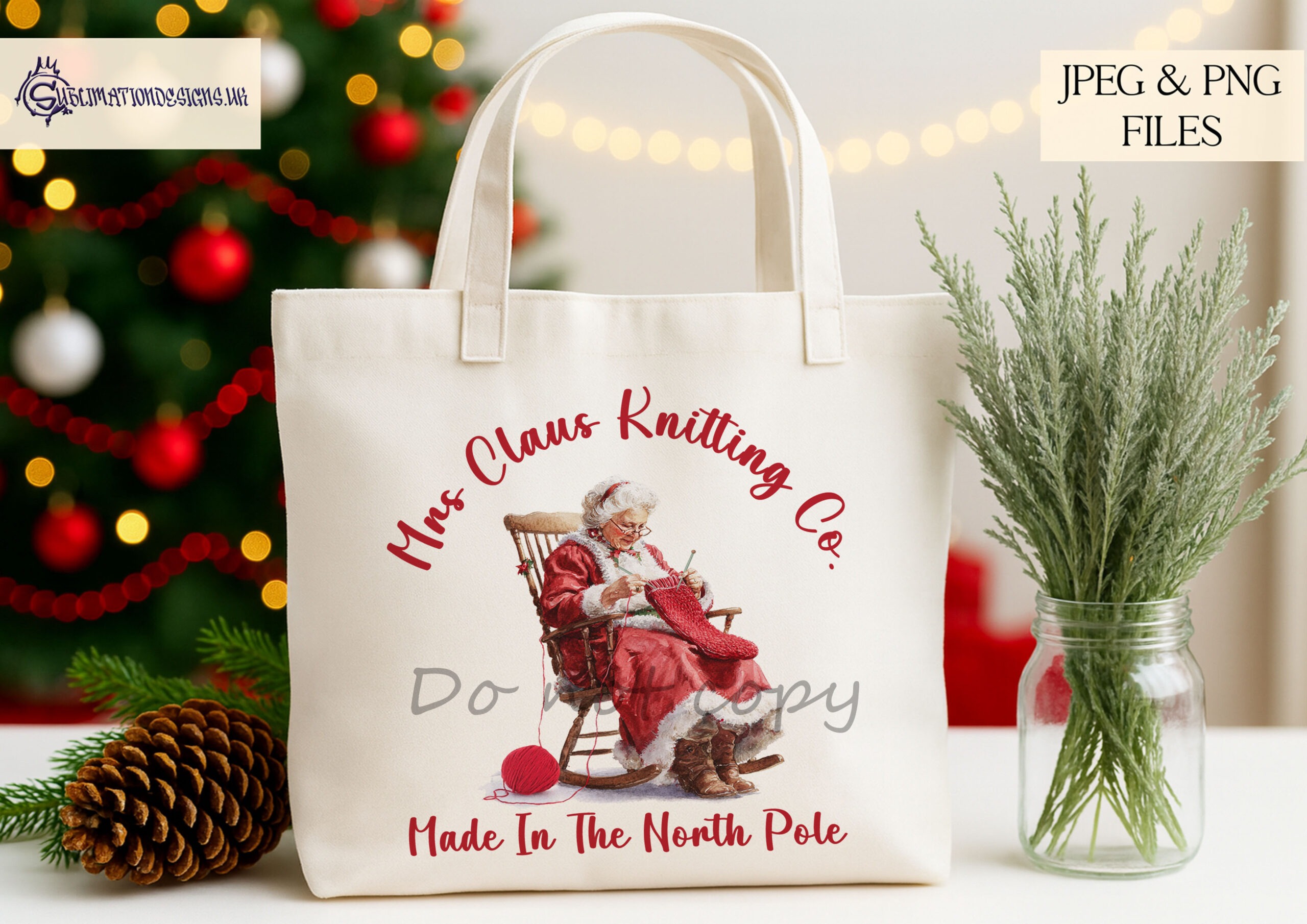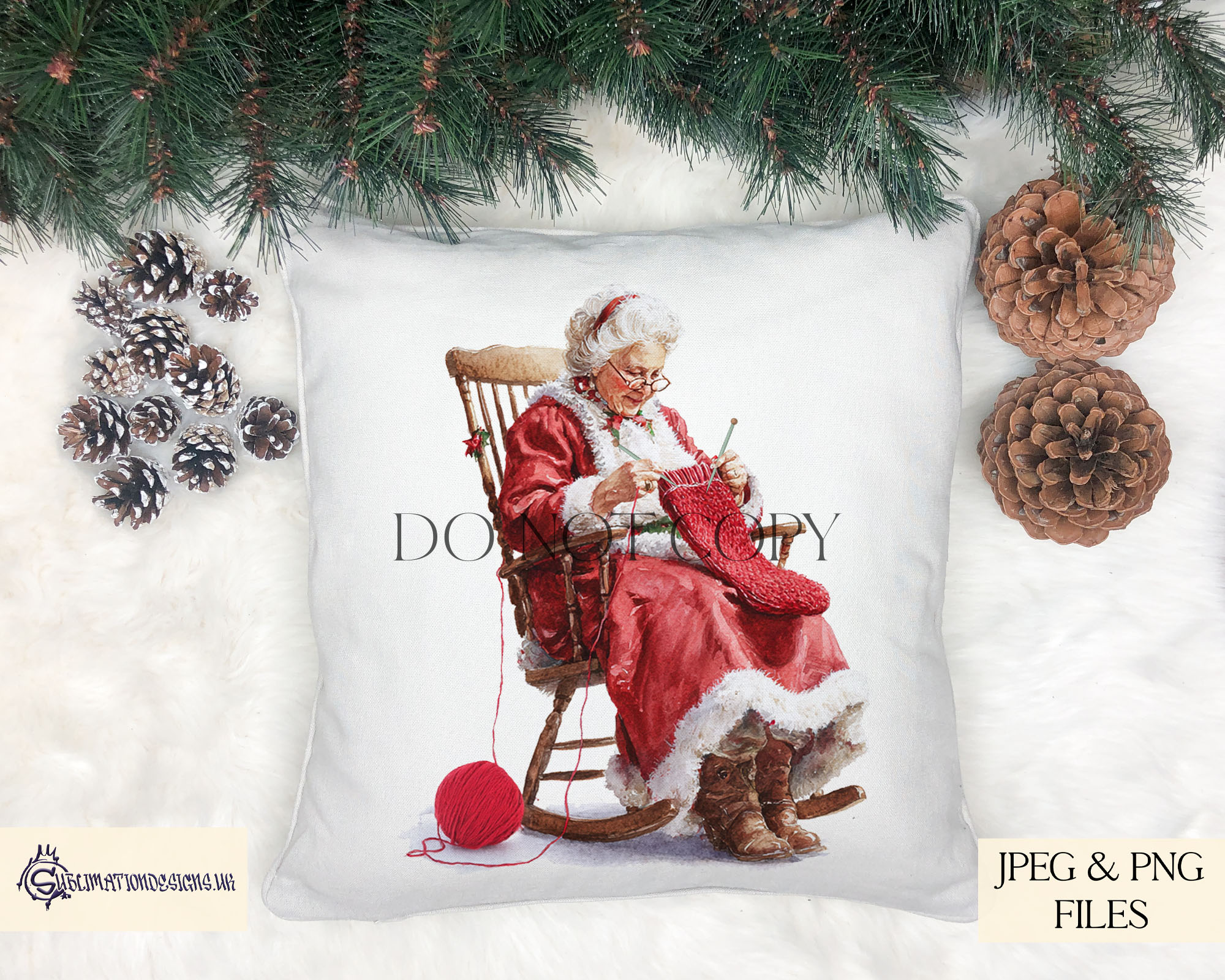 Mrs Claus Knitting Designs Set of 4 | JPEG and PNG | 3 Mock Ups | Commercial Licence