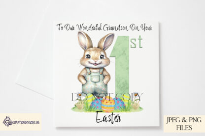 This My First Easter Boy Bunny in Dungarees Design Set is ready for instant download, making it easy to create adorable and memorable gifts.