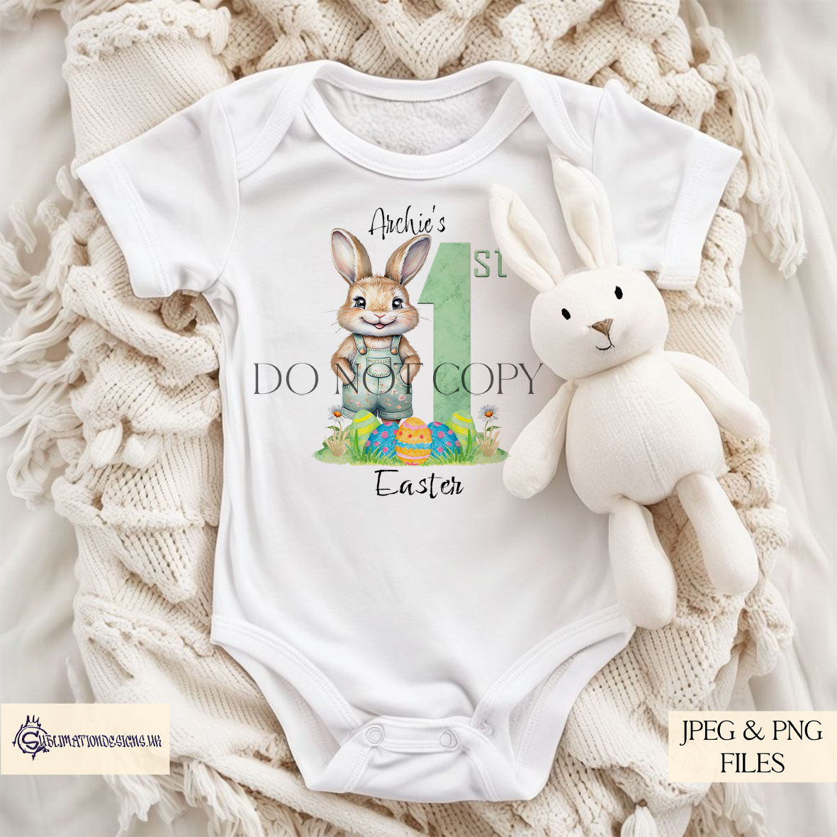 Designed for sublimation printing and crafting, these high-resolution files are ideal for baby apparel, Easter cards, nursery décor, and more.