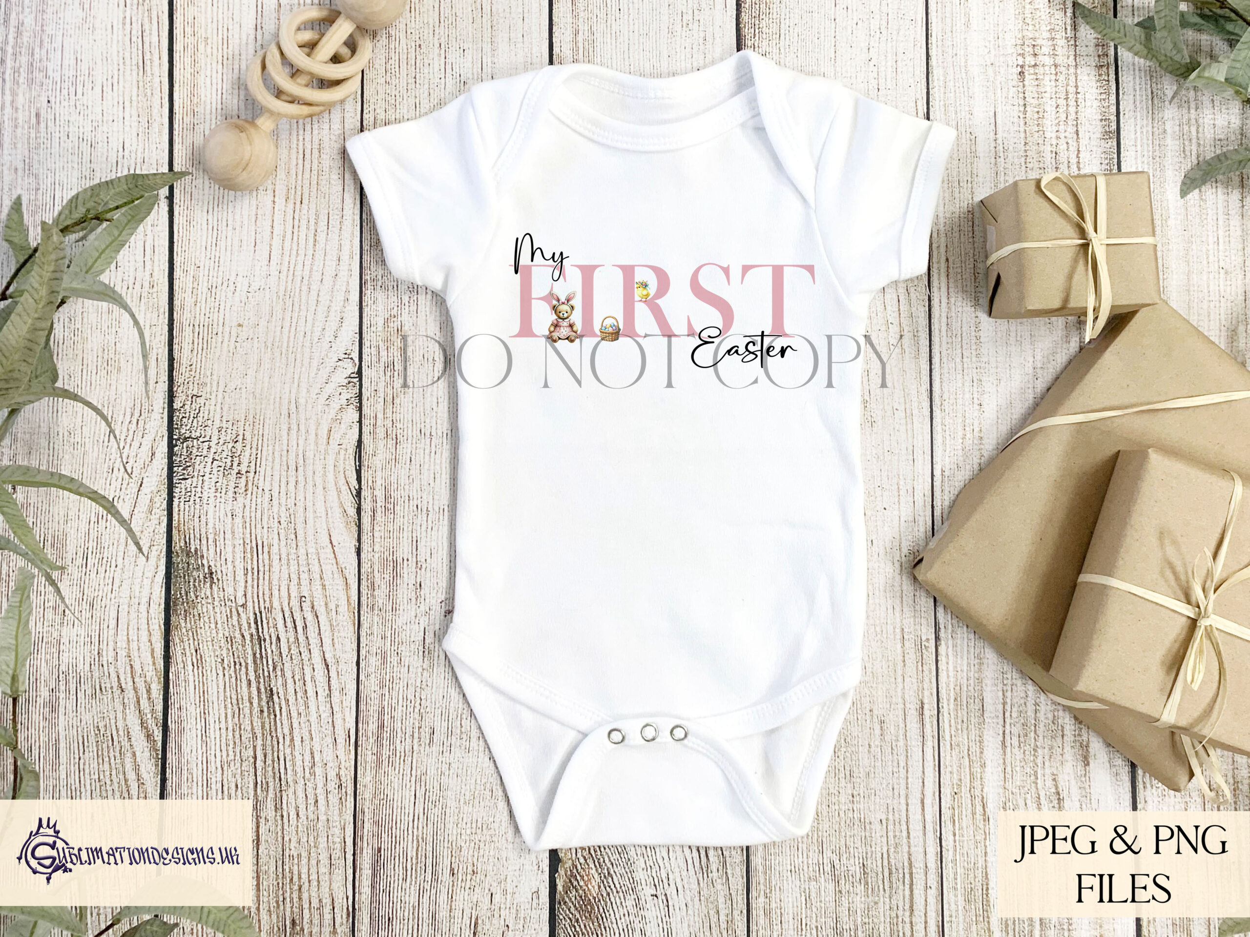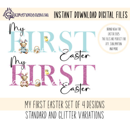 Celebrate those special first Easter moments with our My First Easter Design Set of 4. Featuring our exclusive artwork of a cute Easter teddy, a basket of eggs, and an adorable Easter chick, these designs are perfect for keepsakes and baby apparel such as vests and onesies.