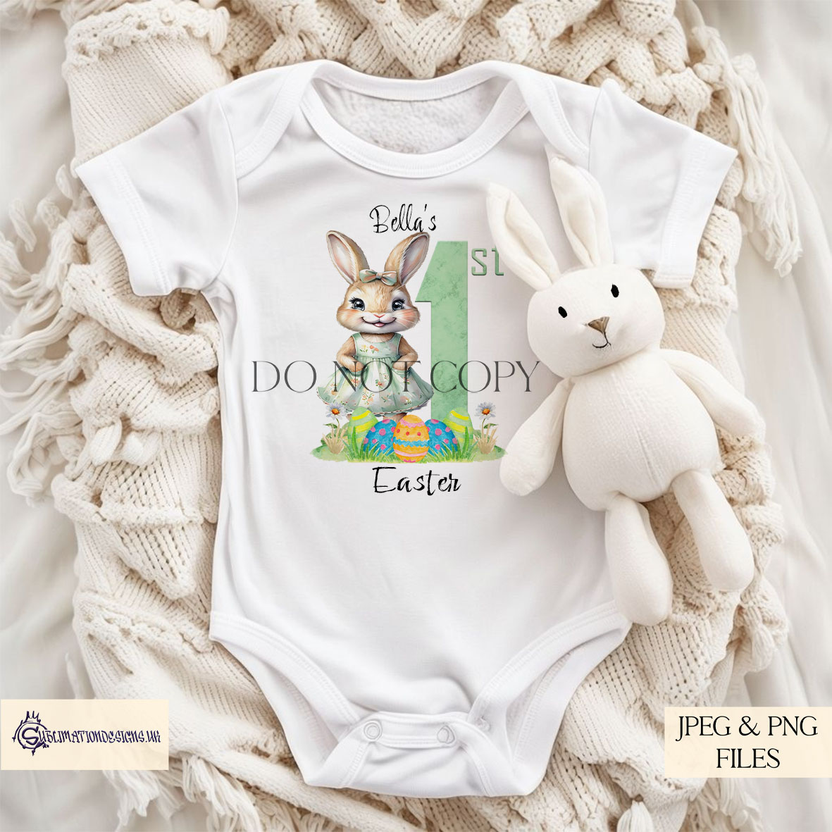 Designed for sublimation printing and crafting, these high-resolution files are ideal for baby apparel, Easter cards, nursery décor, and more.