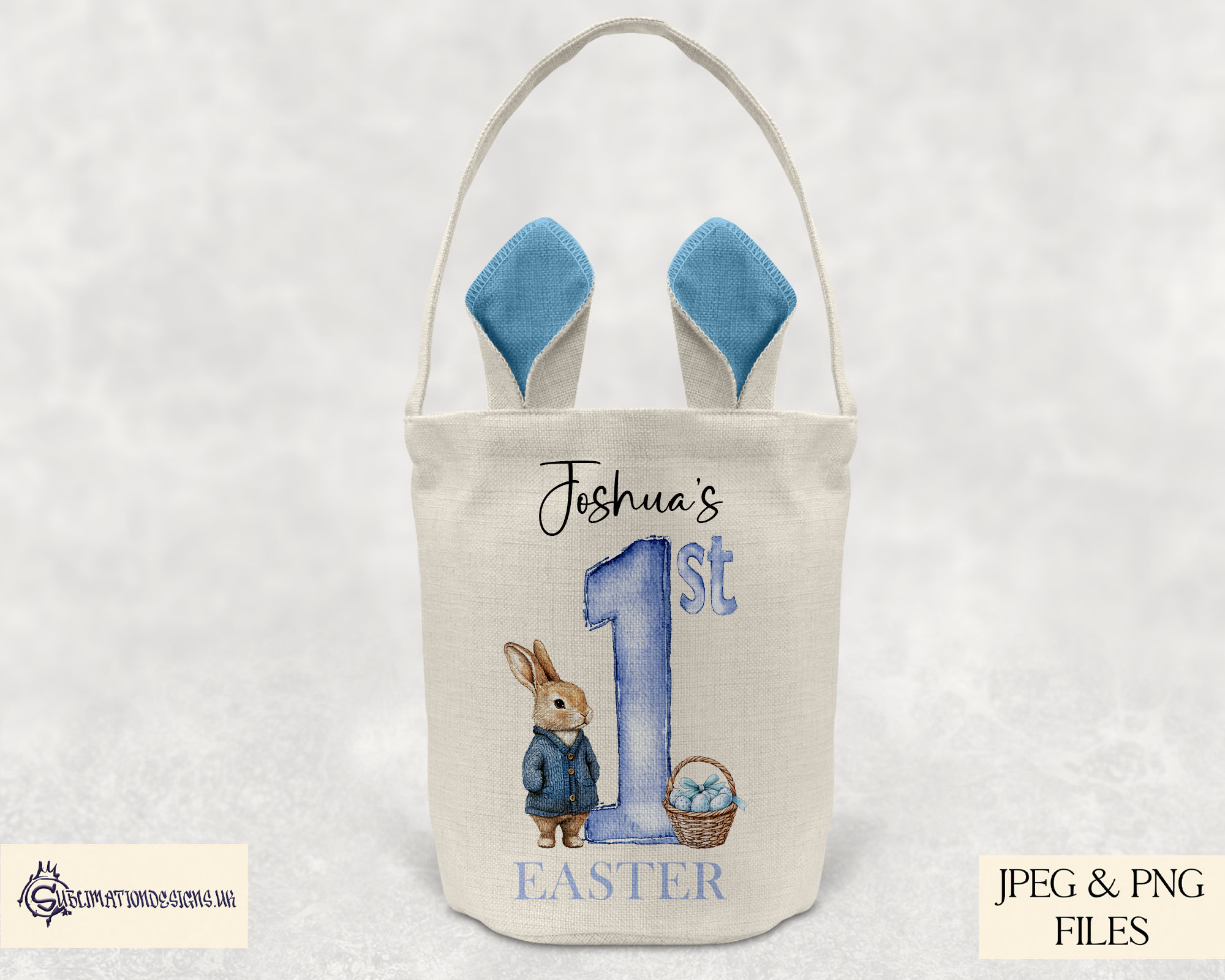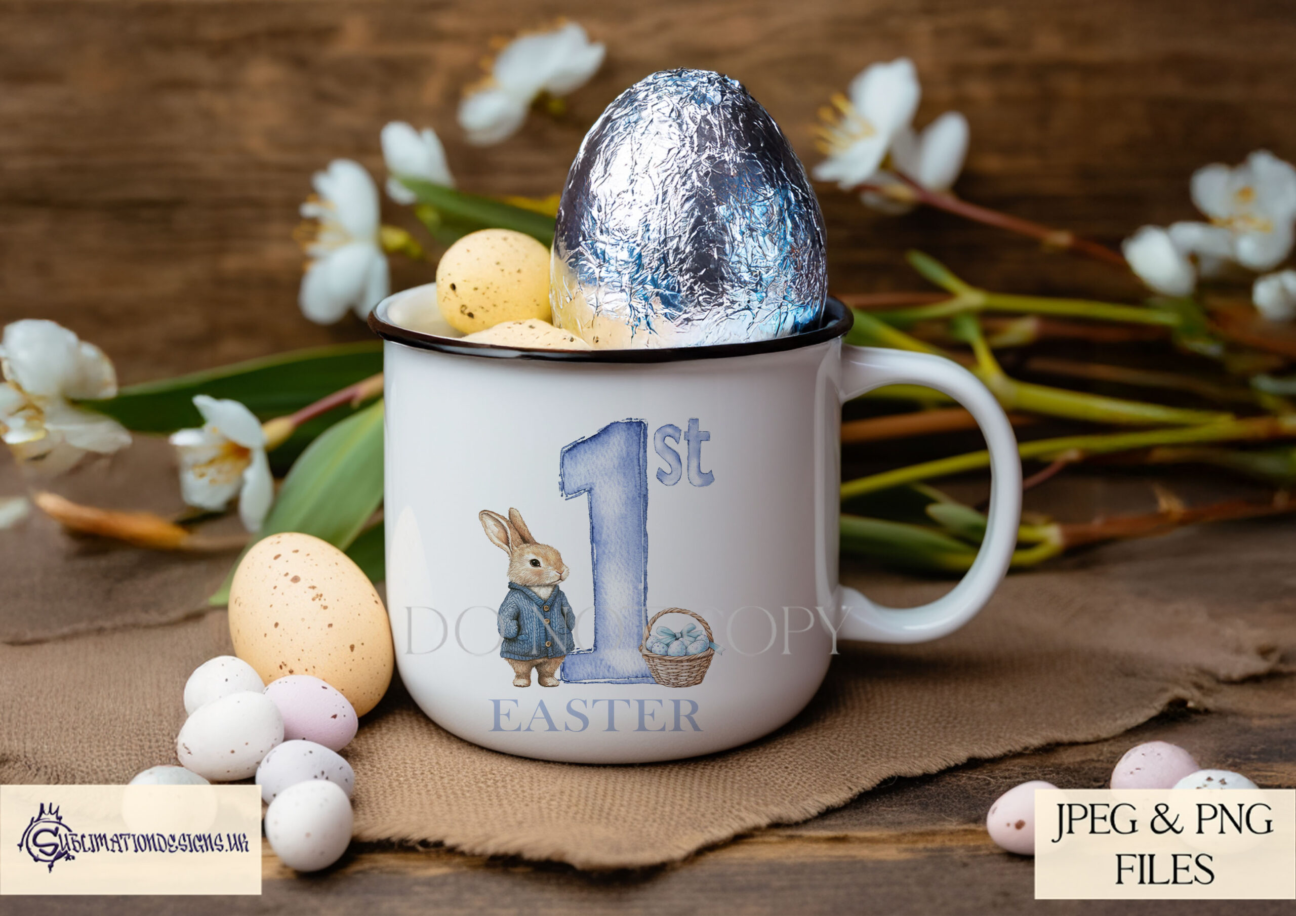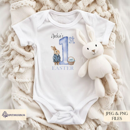 Number of Designs: 1 (Blue Rabbit with “1st Easter” wording)