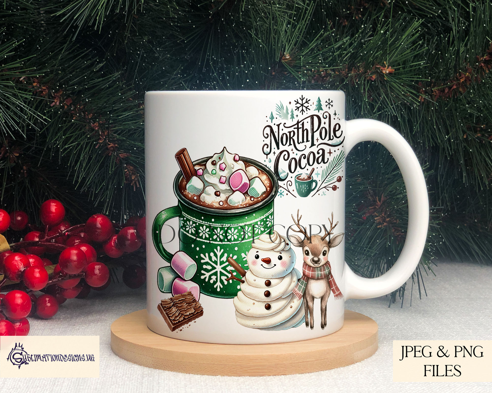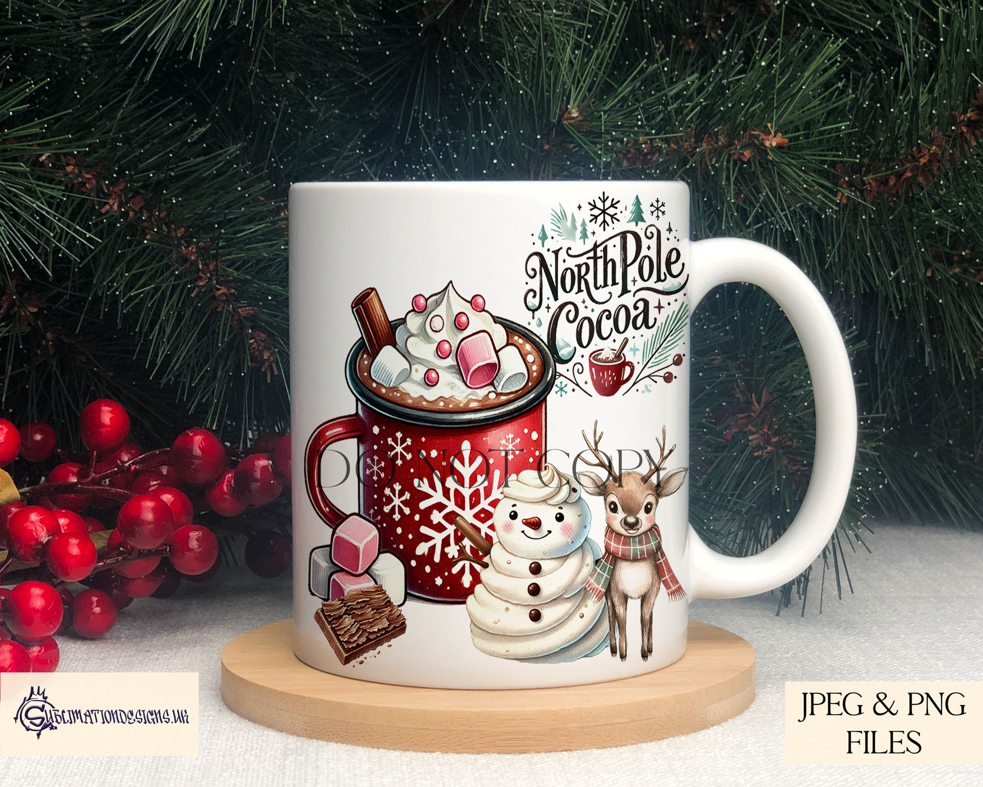 • 4 digital designs featuring North Pole Cocoa artwork (JPEG & PNG, 300 DPI)